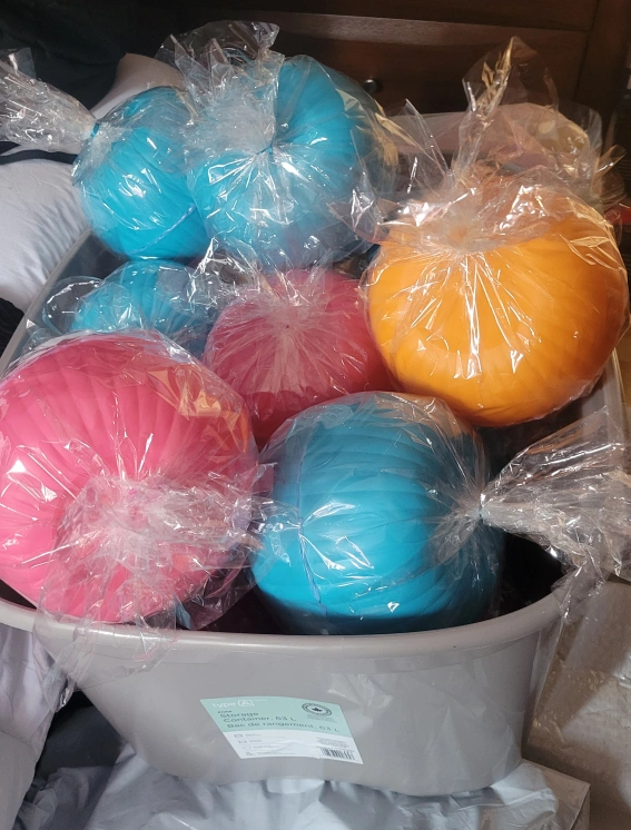 Selling these bunch of colourful decorative balls! Pink, blue, and orange.