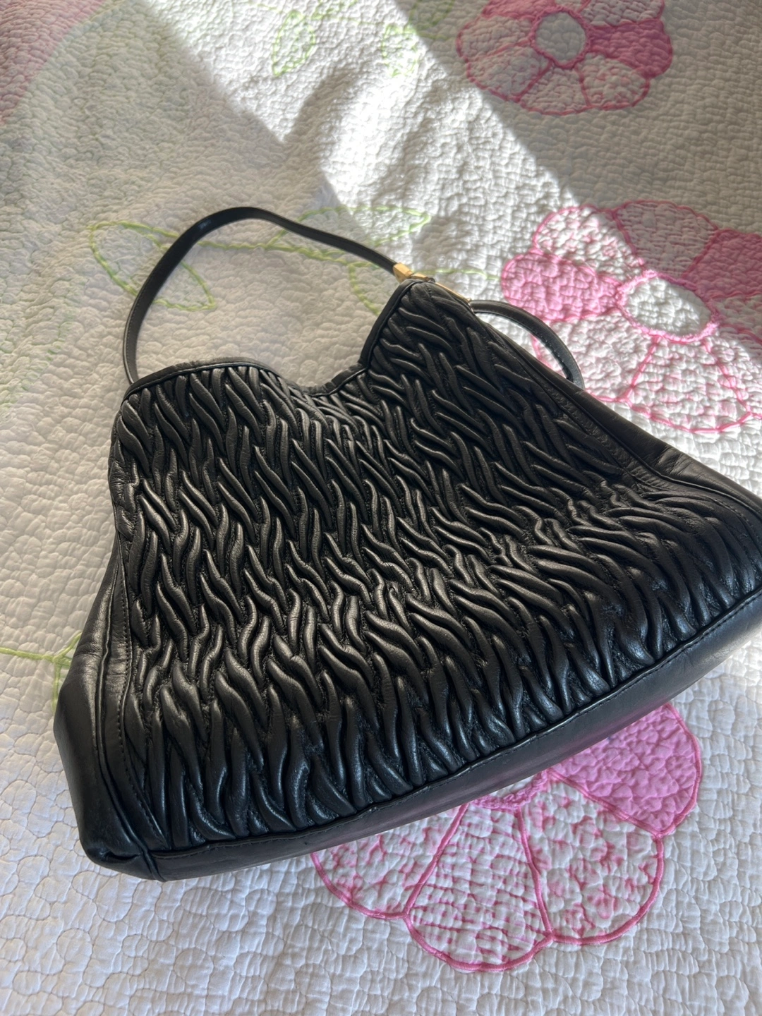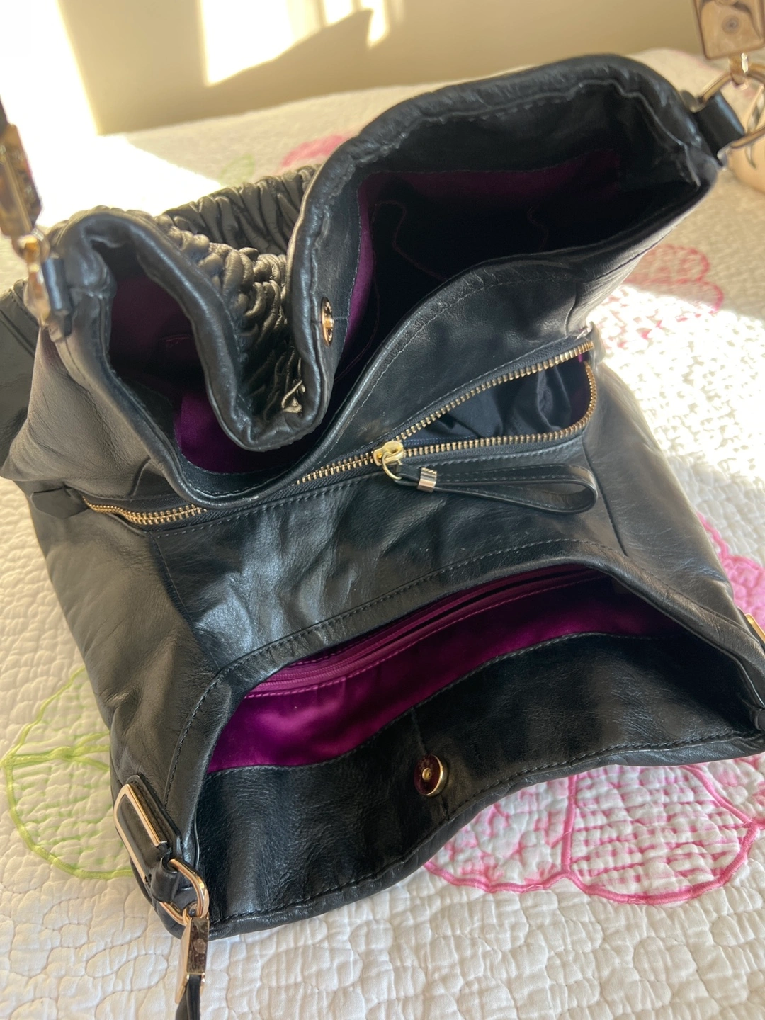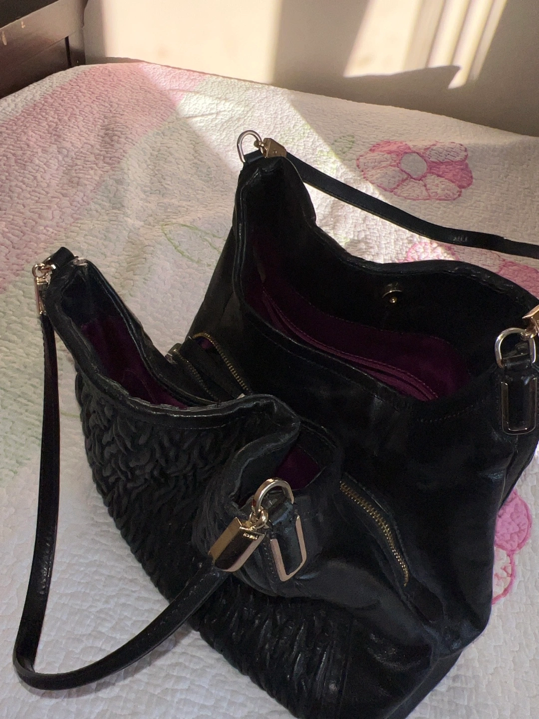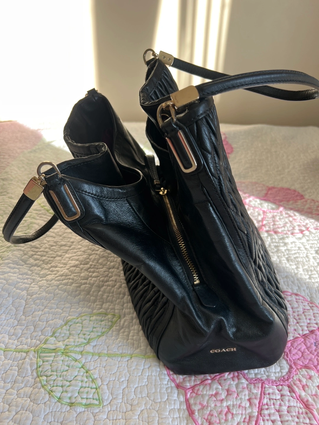 Pre-owned Coach hobo bag. Black leather with a quilted texture. Features a zip closure and multiple compartments. Beautiful inside and out good condition.