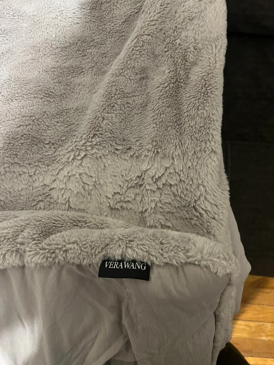 This is a soft, plush blanket in a neutral gray color. It's perfect for snuggling up on the couch or adding an extra layer of warmth to your bed. It's in great condition and ready for a new home Queen