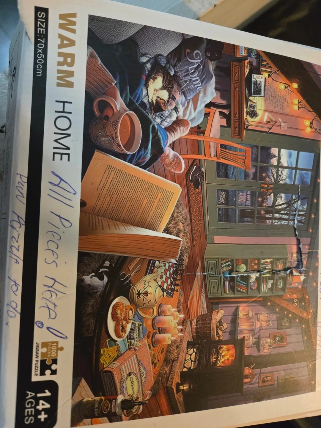 A 1000-piece jigsaw puzzle featuring a cozy 'Warm Home' scene. It's 70x50cm in size. All pieces are confirmed to be present and ready to assemble!
