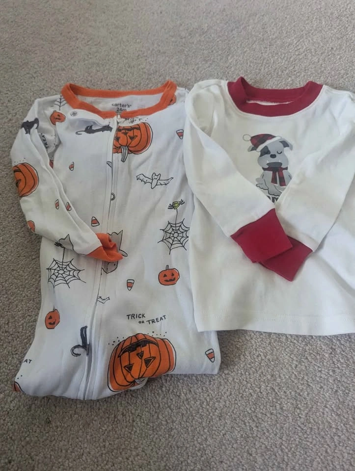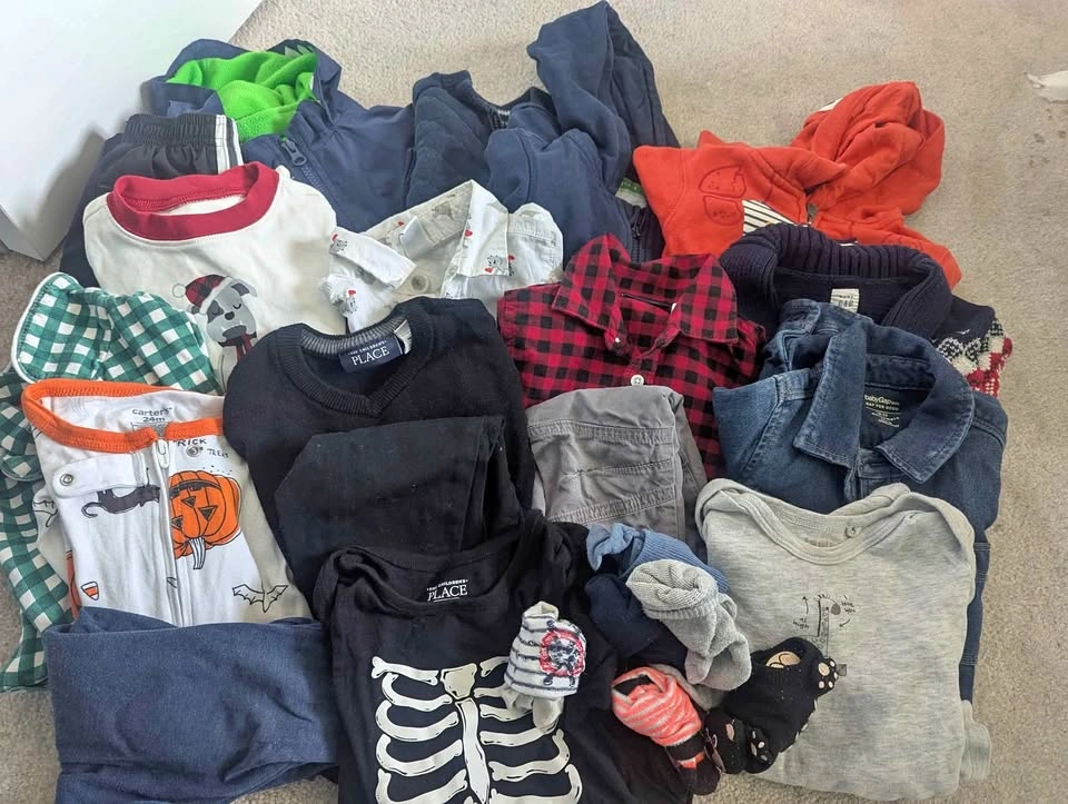Bundle includes jacket (water resistant), sweaters, pants, PJs, tops, rompers