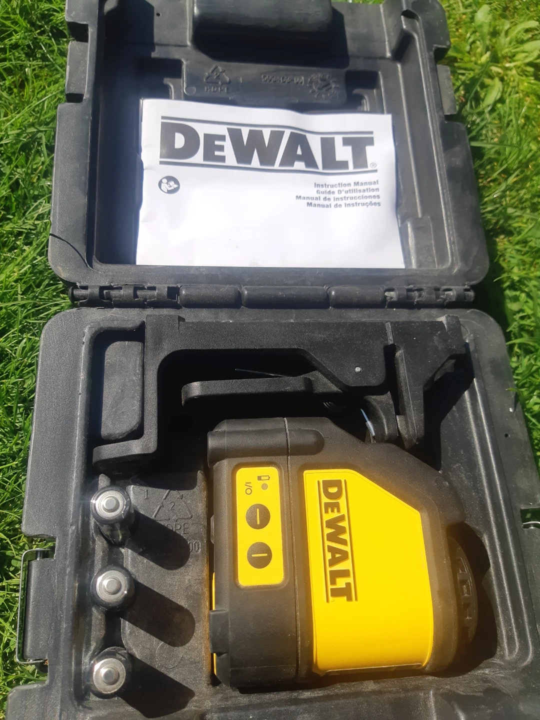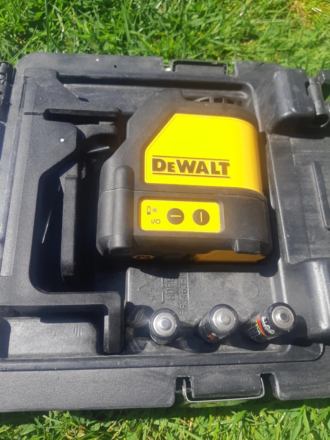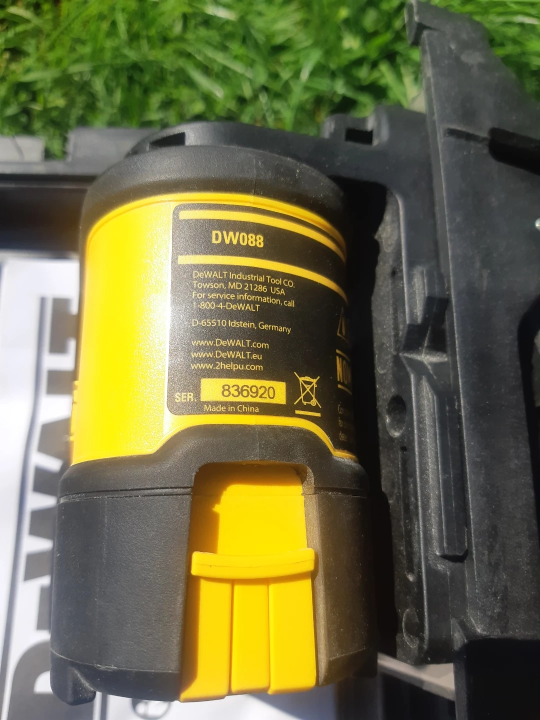 Used Dewalt DW088 self-levelling laser level. Includes carrying case and batteries. Model number DW088.