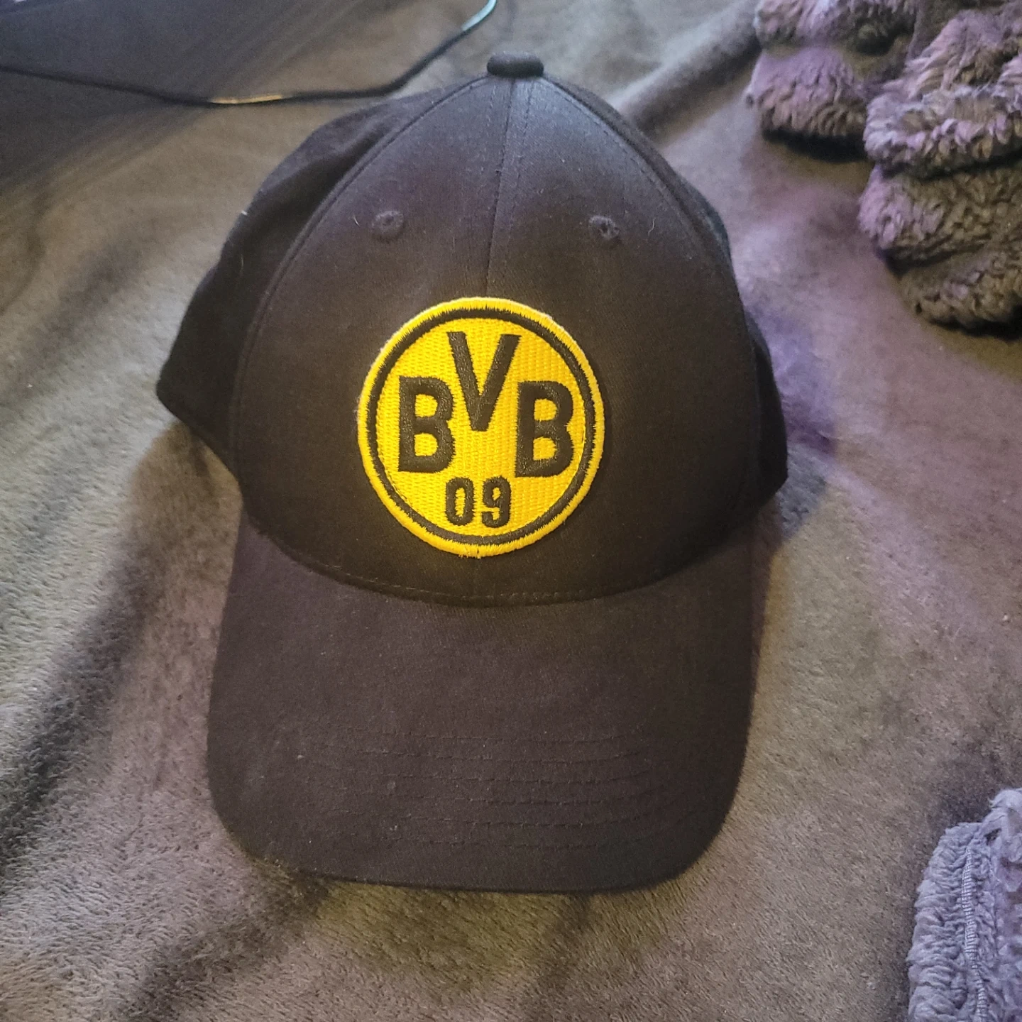Black Puma baseball cap with yellow BVB 09 logo. OSFA size. One size fits all.