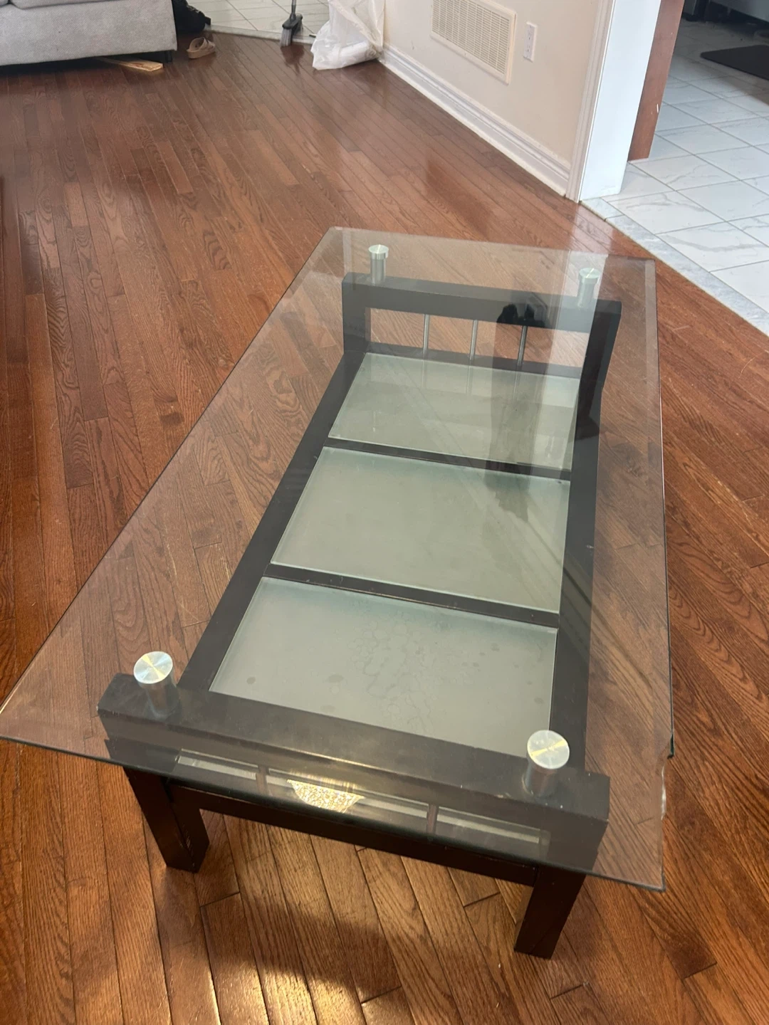Glass Top Coffee Table with Dark Wood Frame