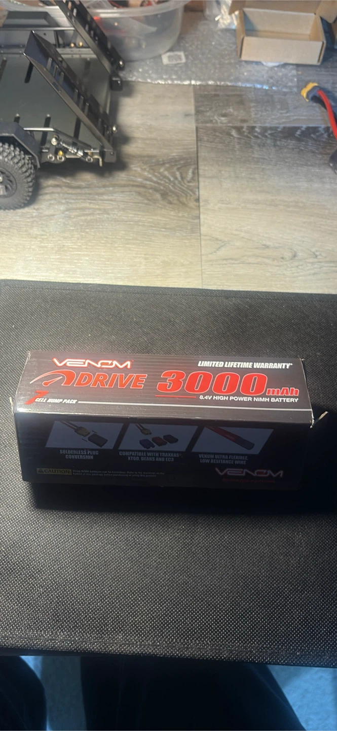 Venom 8.4V 3000mAh NiMH battery pack. It features solderless plug conversion and is compatible with Traxxas, XT60, Deans, and EC3 connectors. Comes with extra adapter plugs. This battery is great for high power needs in RC vehicles.