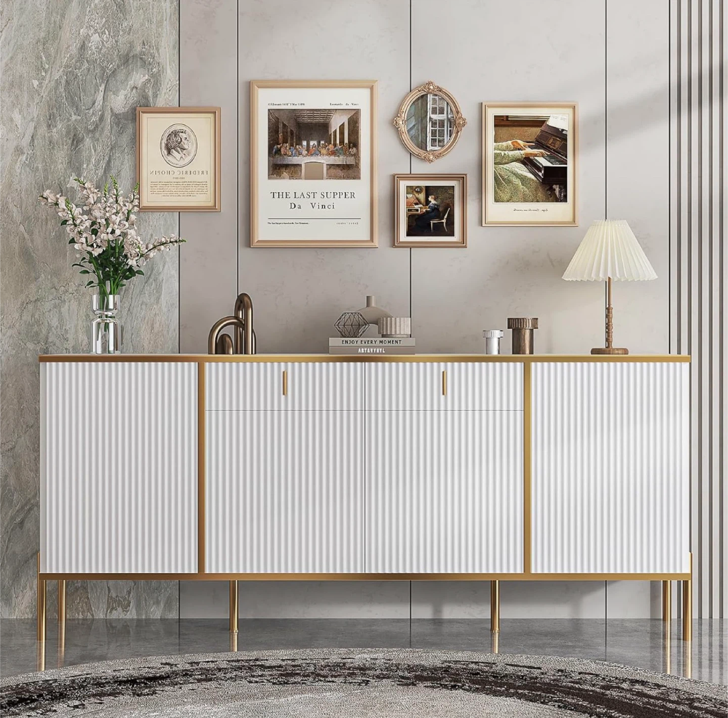Selling a beautiful accent cabinet in a stylish white and gold finish. It's in like-new condition and would look great in any living room or dining room! Perfect for adding a touch of elegance to your home decor