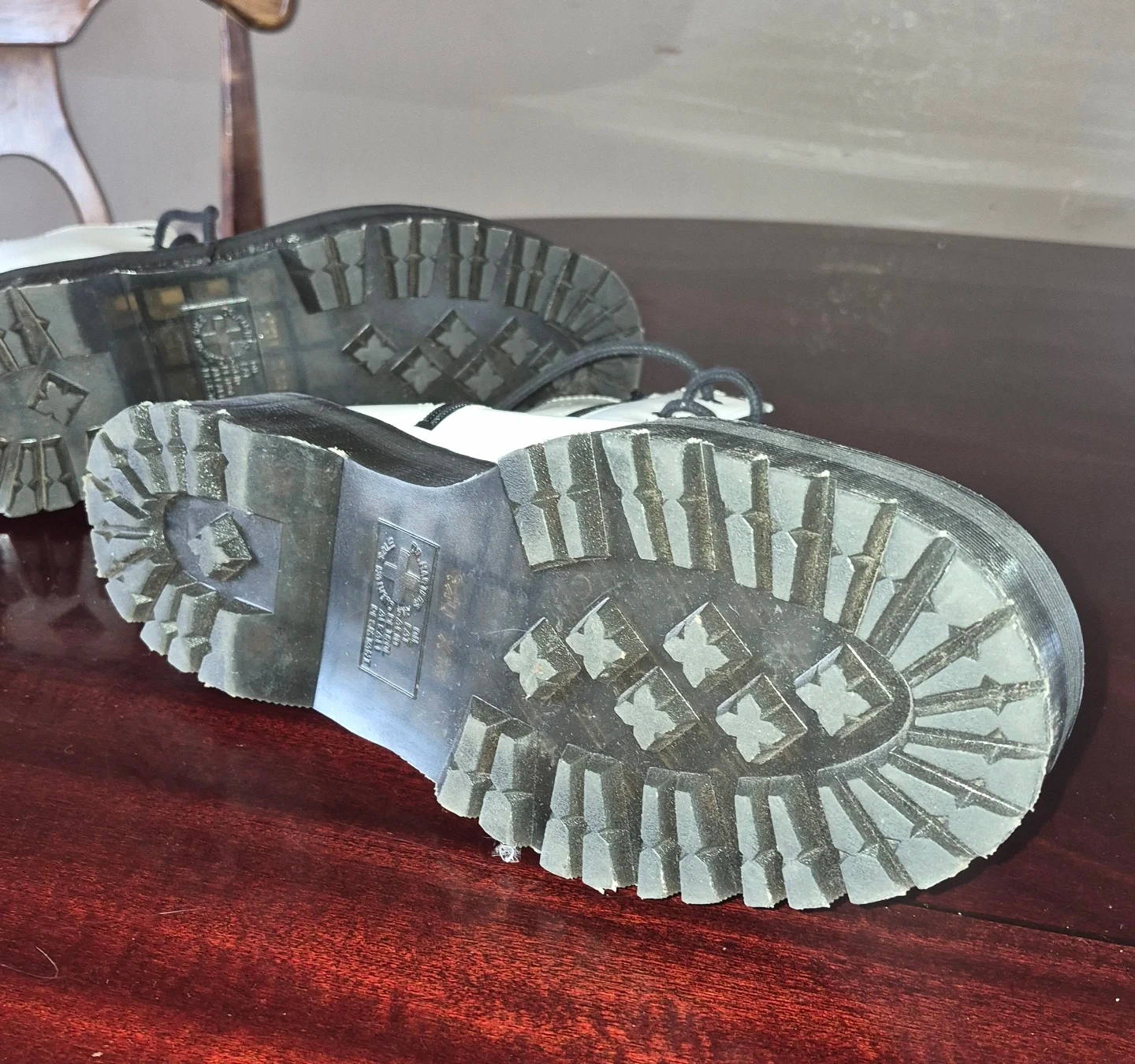 Worn once. These boots have the classic yellow stitching and a durable rubber sole. Perfect for adding some edge to your outfit!