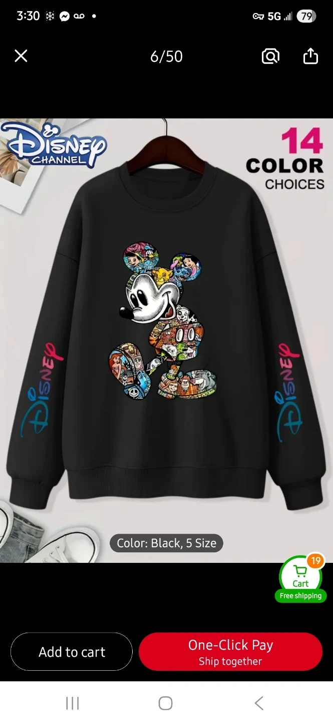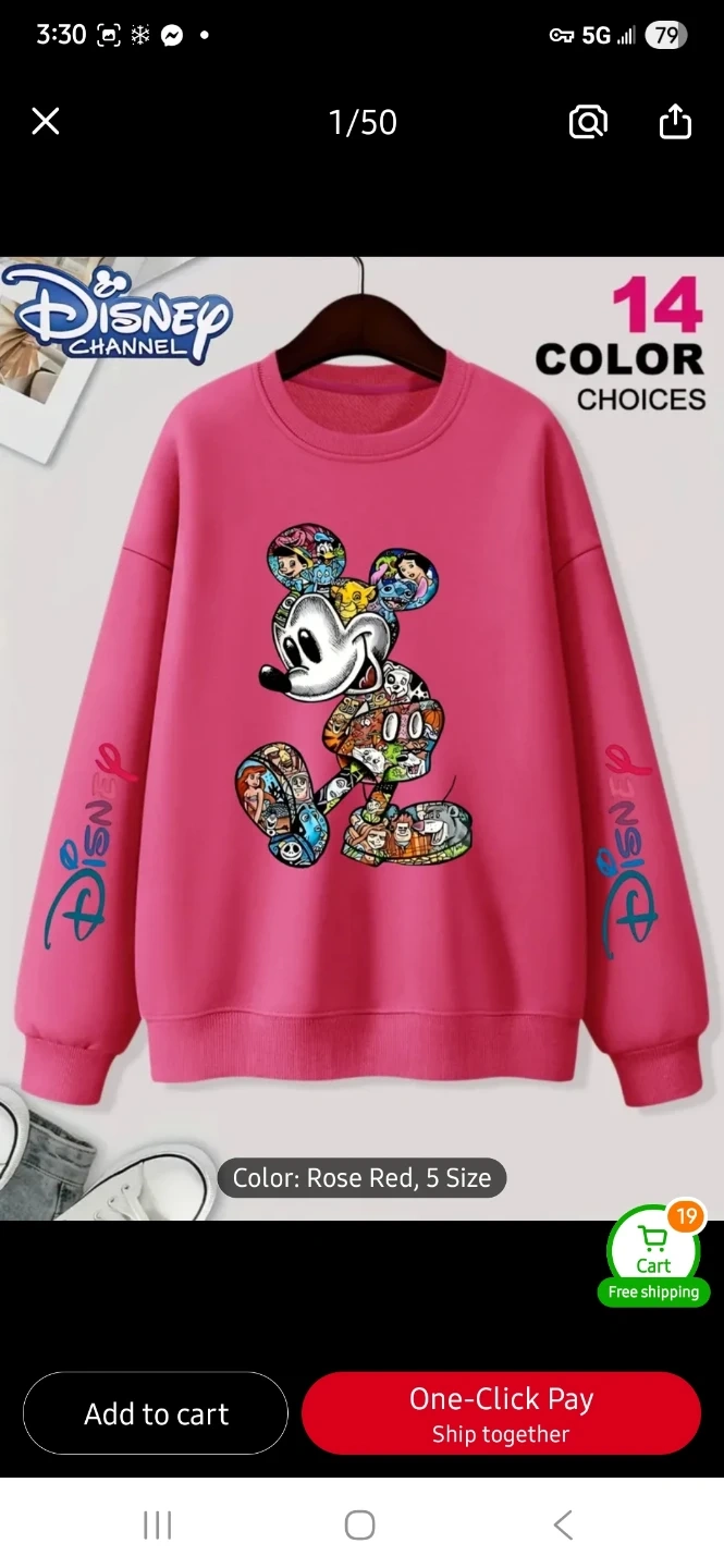 This Disney Channel crewneck sweatshirt features a colourful Mickey Mouse graphic. It's available in light grey, white, rose red, and black. It's stylish for both a lady or a guy!