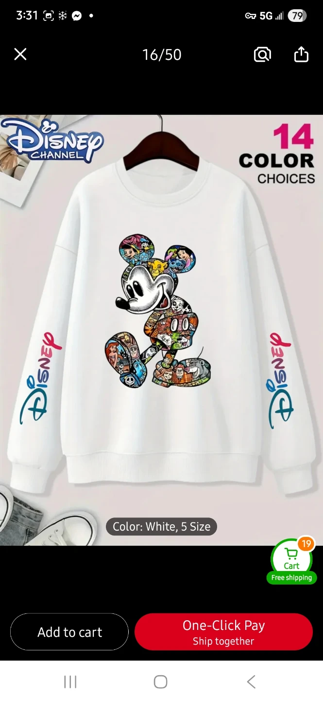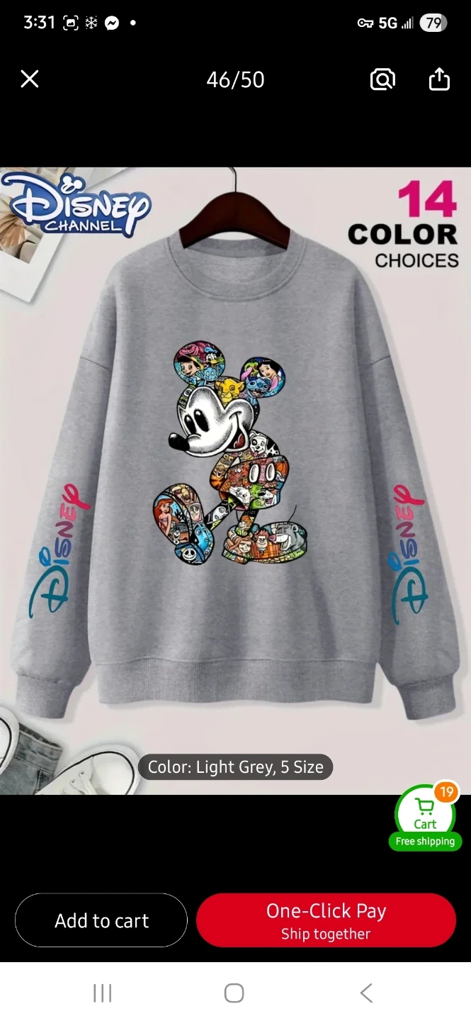This Disney Channel crewneck sweatshirt features a colourful Mickey Mouse graphic. It's available in light grey, white, rose red, and black. It's stylish for both a lady or a guy!