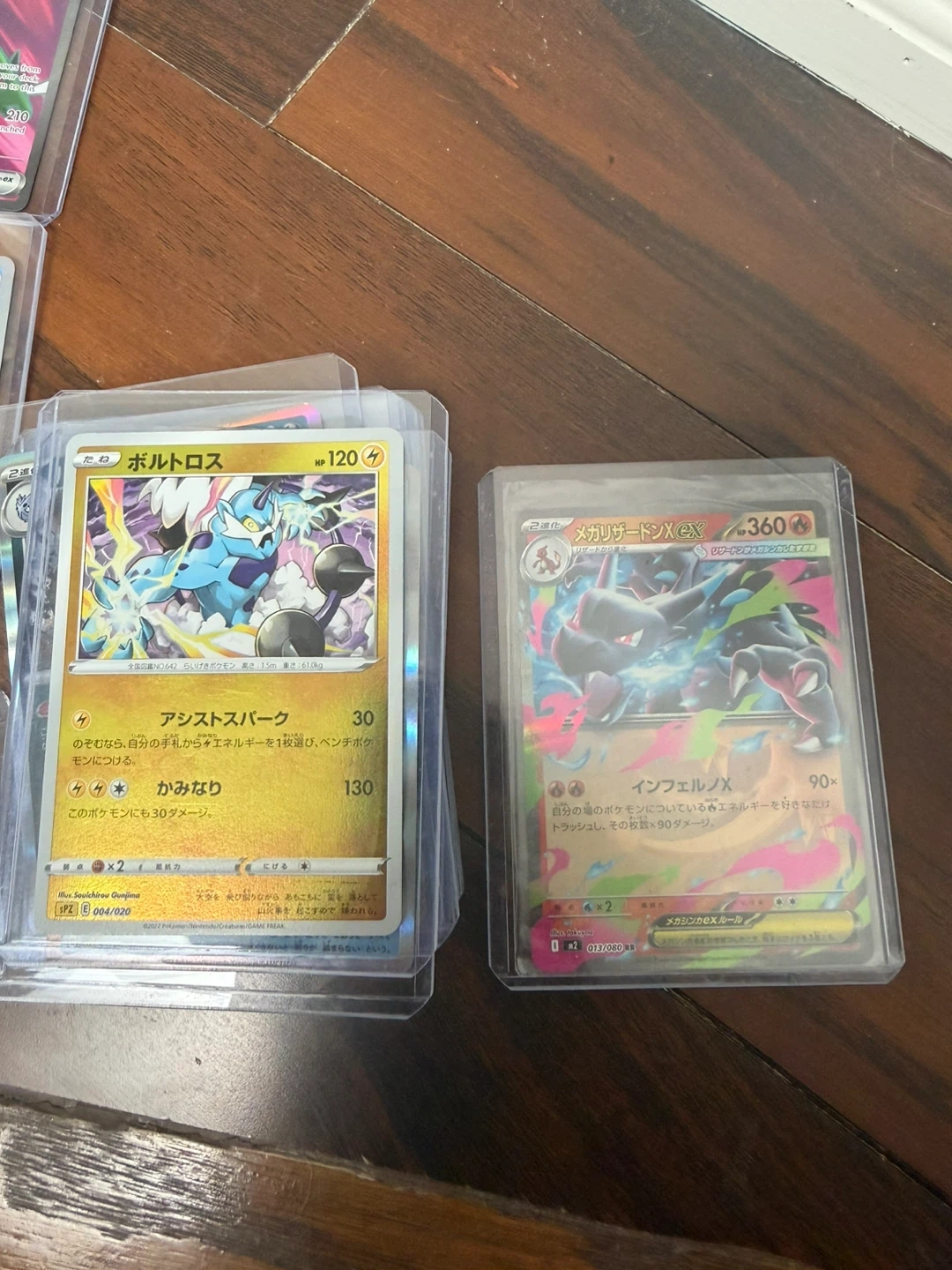 Collection of various Pokémon trading cards. Cards are housed in protective sleeves. Includes several holographic and rare cards. Great for collectors! mainly japanese and korean cards some english.