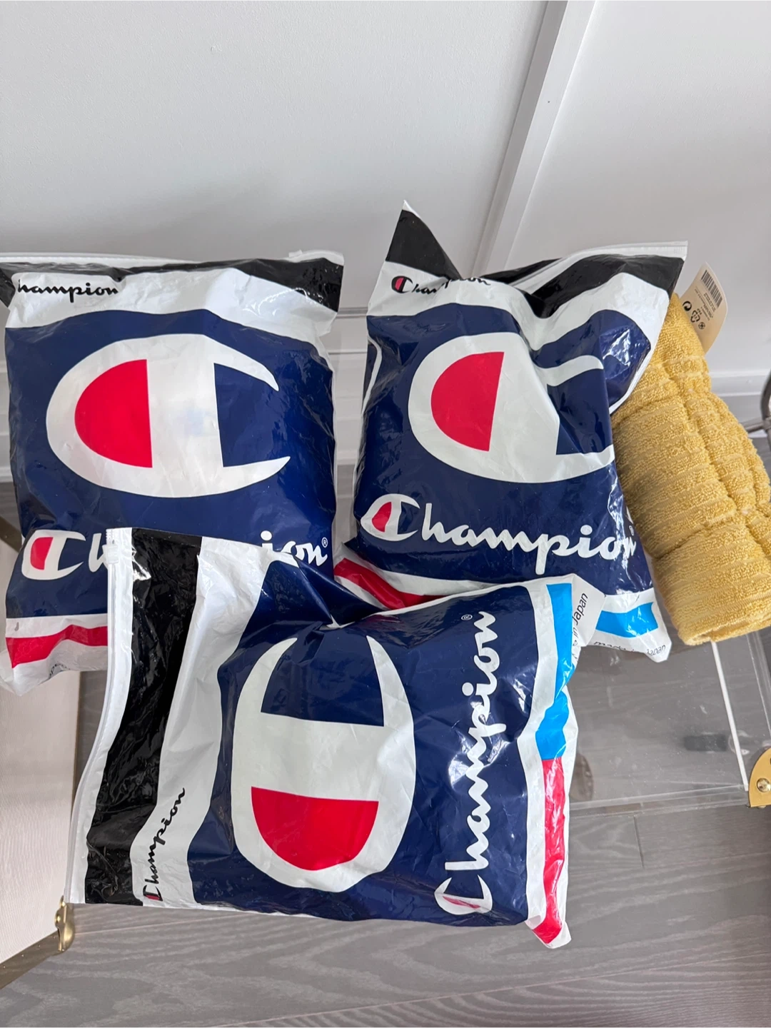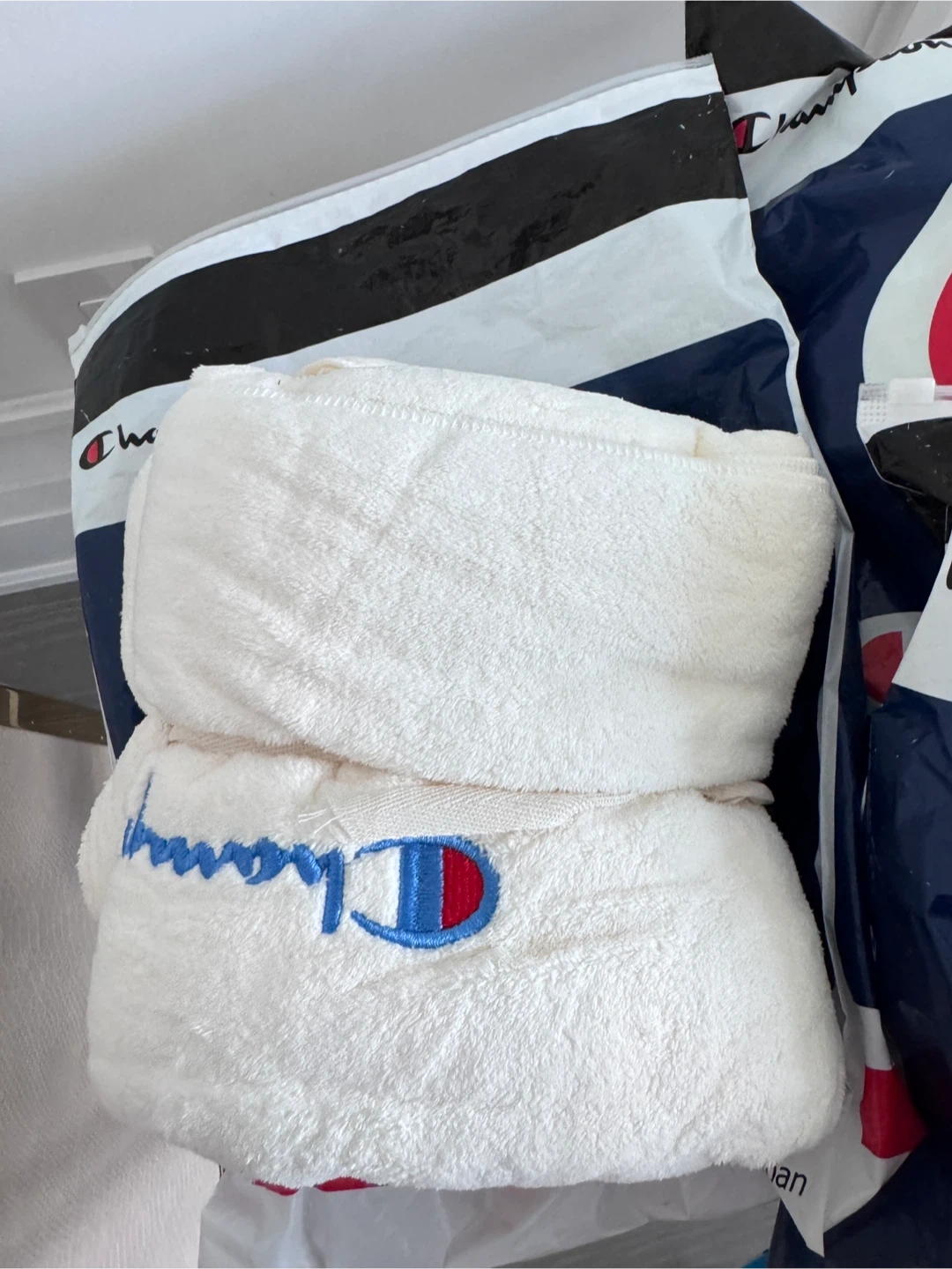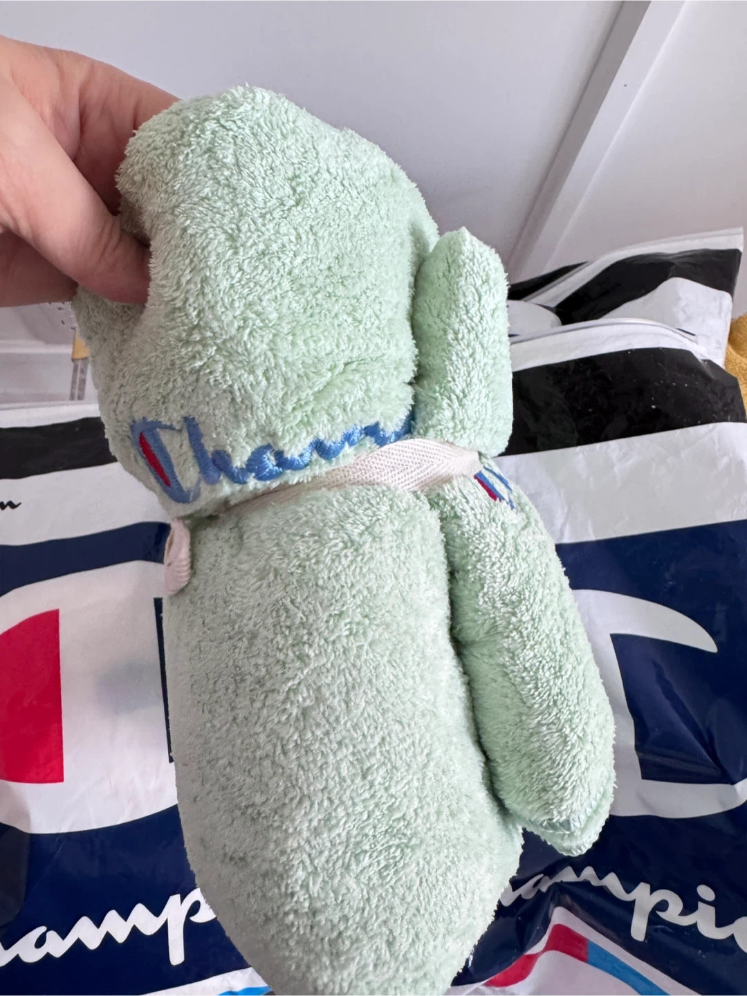 Here are some Champion towel sets in a lovely light green colour and creamy white colour! They are brand new and ready for a new home in your bathroom or gym bag.