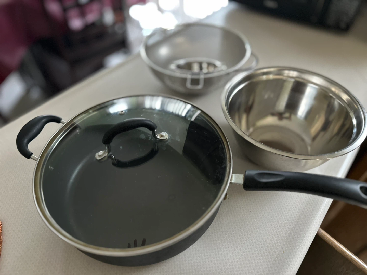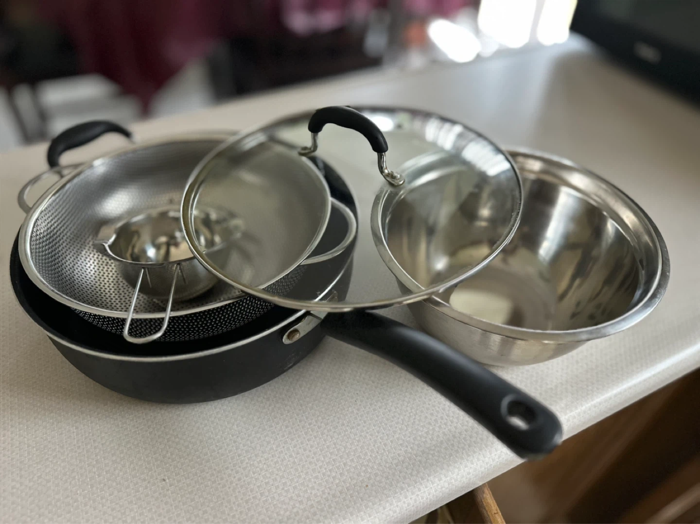 Buy & SellCooking Pot Set with Lid and Mixing BowlCooking Pot Set with Lid and Mixing Bowl$15This set includes a frying pan with a glass lid, a metal mixing bowl, and a colander. All for $15ConditionGoodWHERE TO MEETCheck LocationView MapSELLERAshwinHurontario161 review1 chats·0 favorites·18 viewsSEND CHAT TO SELLERHi Ashwin! I’m interested in your listing.Hi Ashwin! I’m interested in your listing.Get the Karrot app to chatSign In to chat