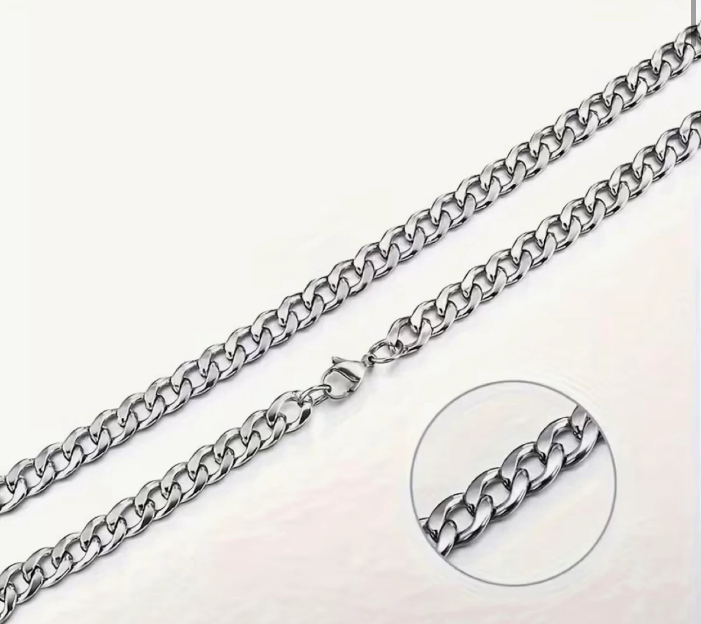 A sleek silver curb chain necklace. This piece is made from stainless steel and features a classic link design. It's perfect for everyday wear or layering with other accessories only two left!