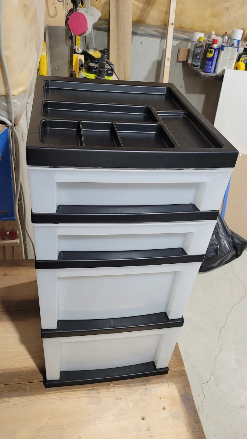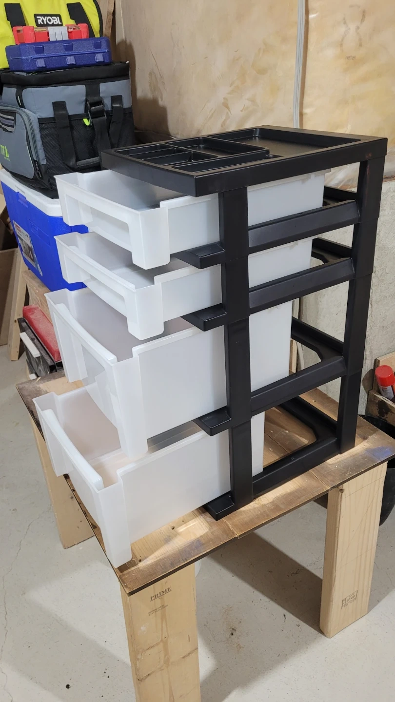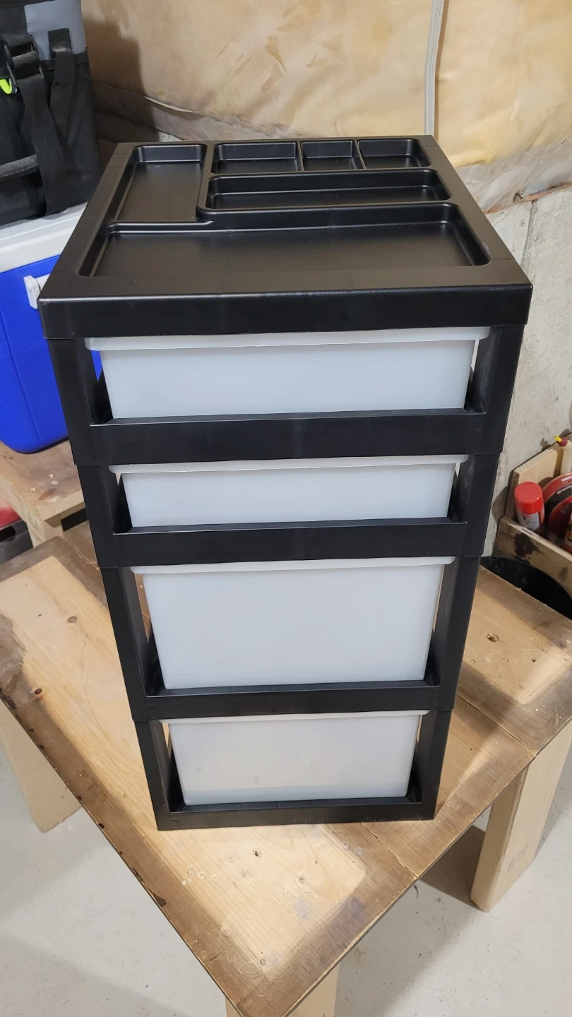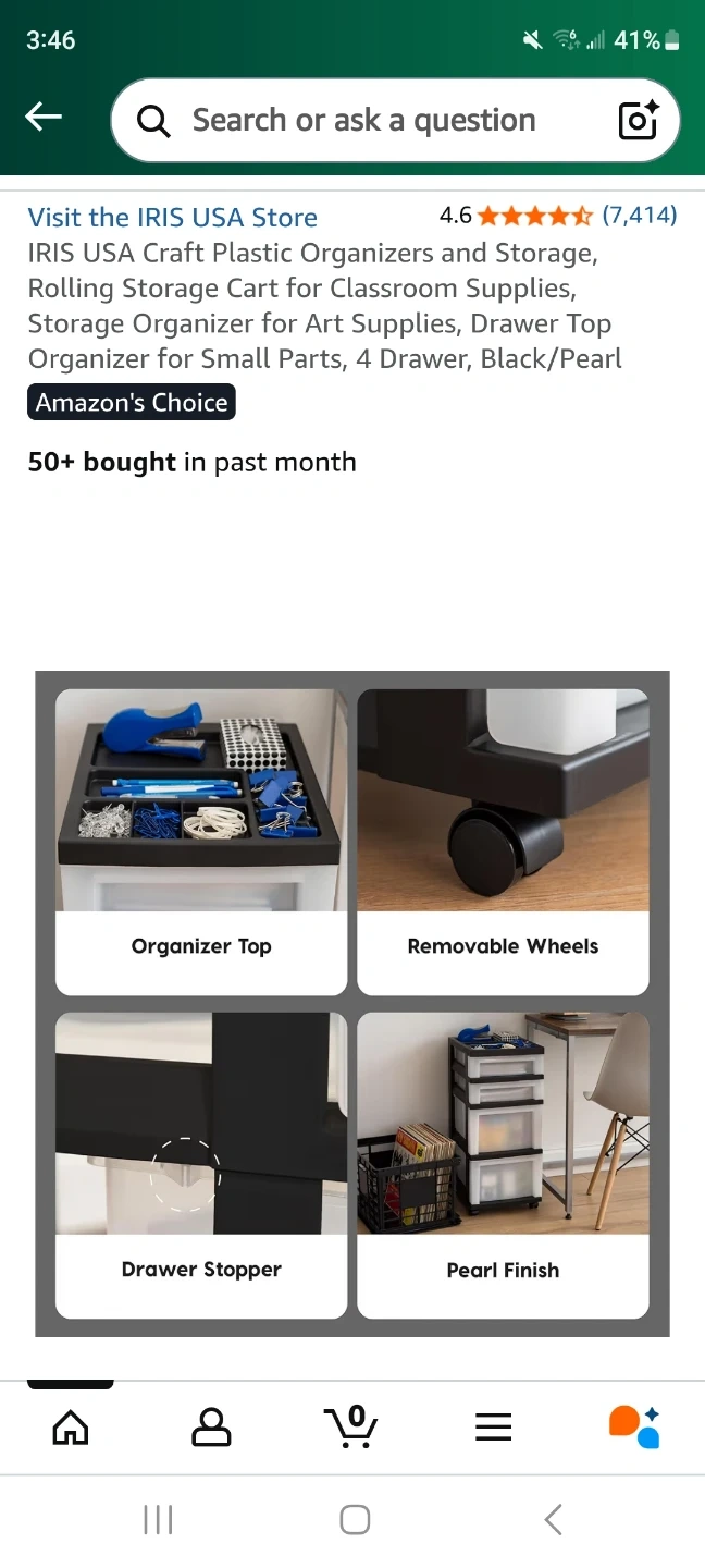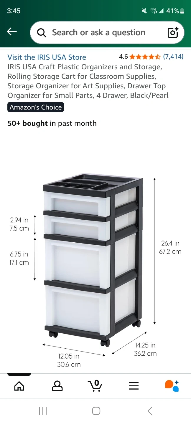 Selling an IRIS USA craft plastic organizer and storage cart. It features four drawers and a drawer top organizer for small parts. The frame is black and the drawers are pearl white. The dimensions are approximately 26.4 inches (67.2 cm) in height, 12.05 inches (30.6 cm) in width, and 14.25 inches (36.2 cm) in depth. The cart comes with rolling casters for easy movement!