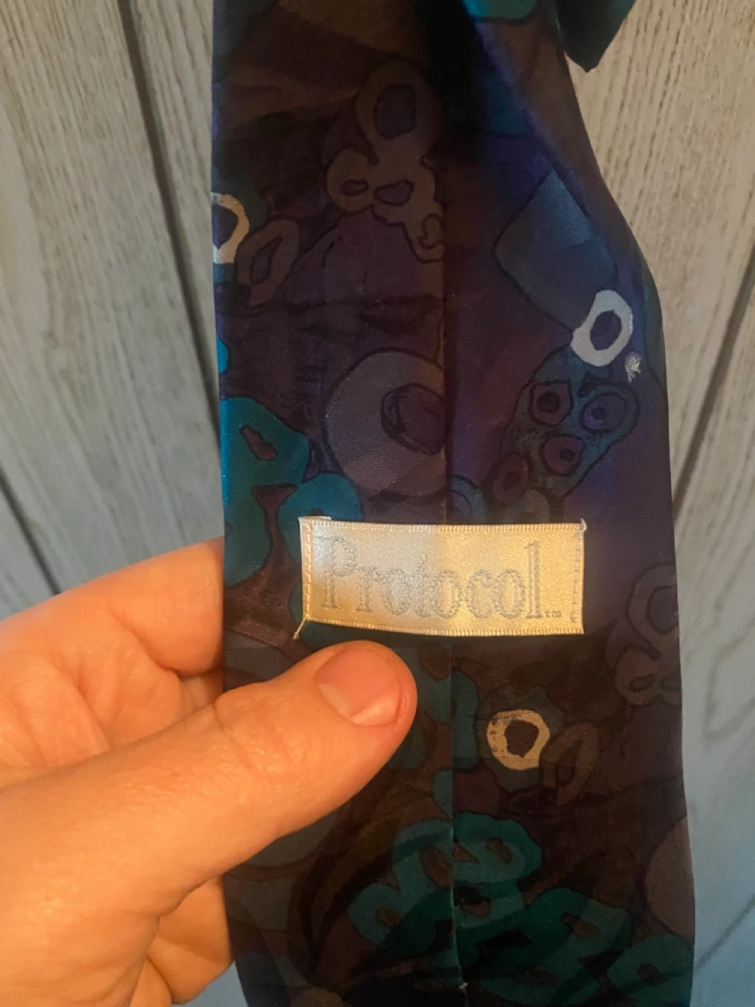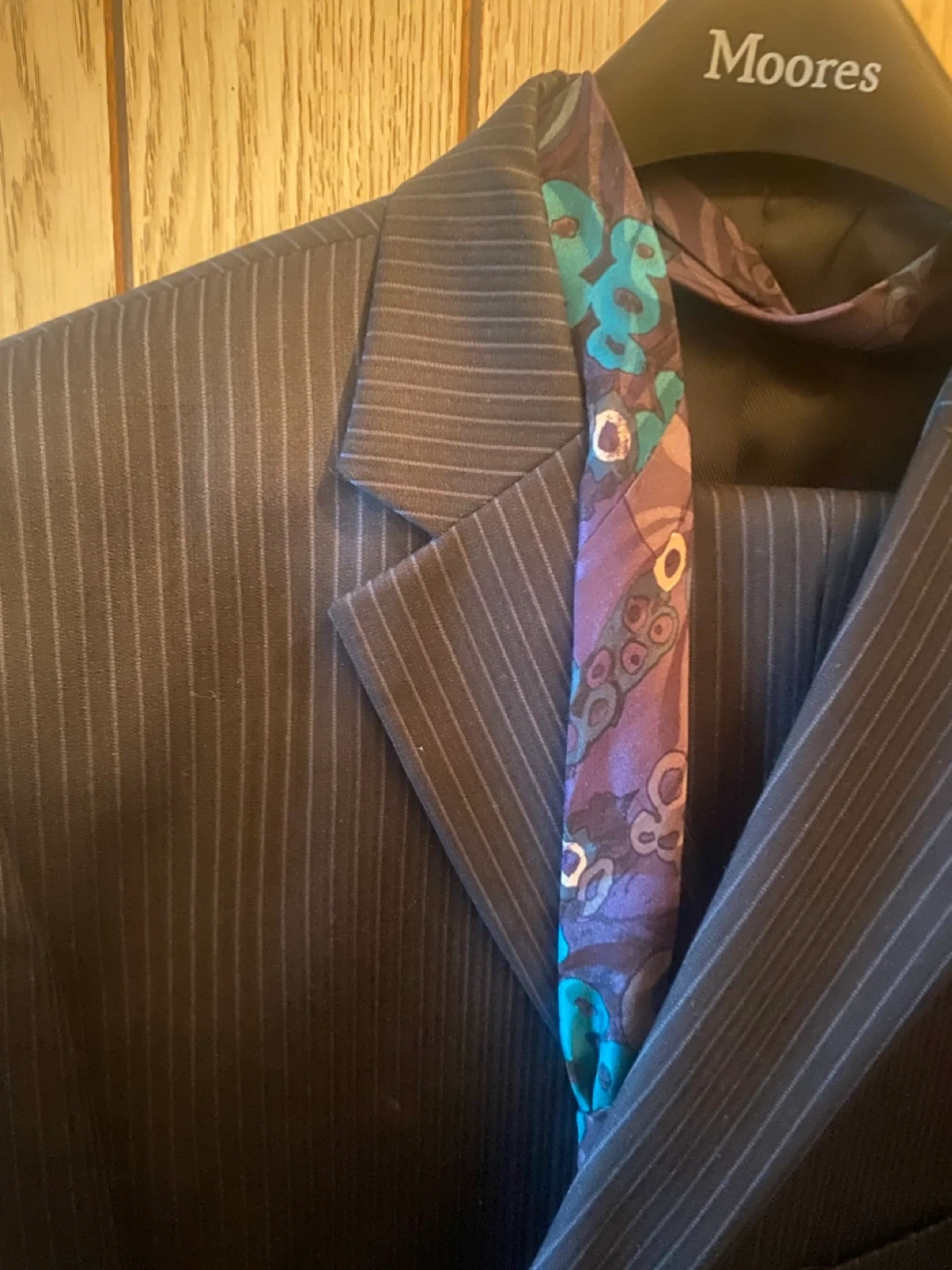 Claiborne men's suit, made from Super 100's extra fine wool. It's a pinstripe design in a dark colour. Includes a patterned tie from Protocol. Perfect for formal occasions!