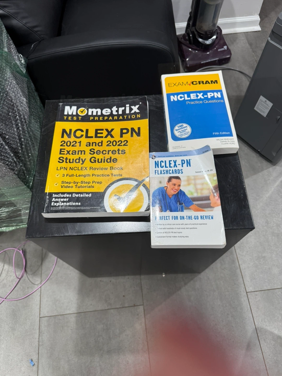 Selling a bundle of NCLEX-PN exam preparation materials. Includes the Mometrix 2021 and 2022 Exam Secrets Study Guide, Exam Cram Practice Questions (Fifth Edition), and NCLEX-PN Flashcards. Perfect for on-the-go review and comprehensive study