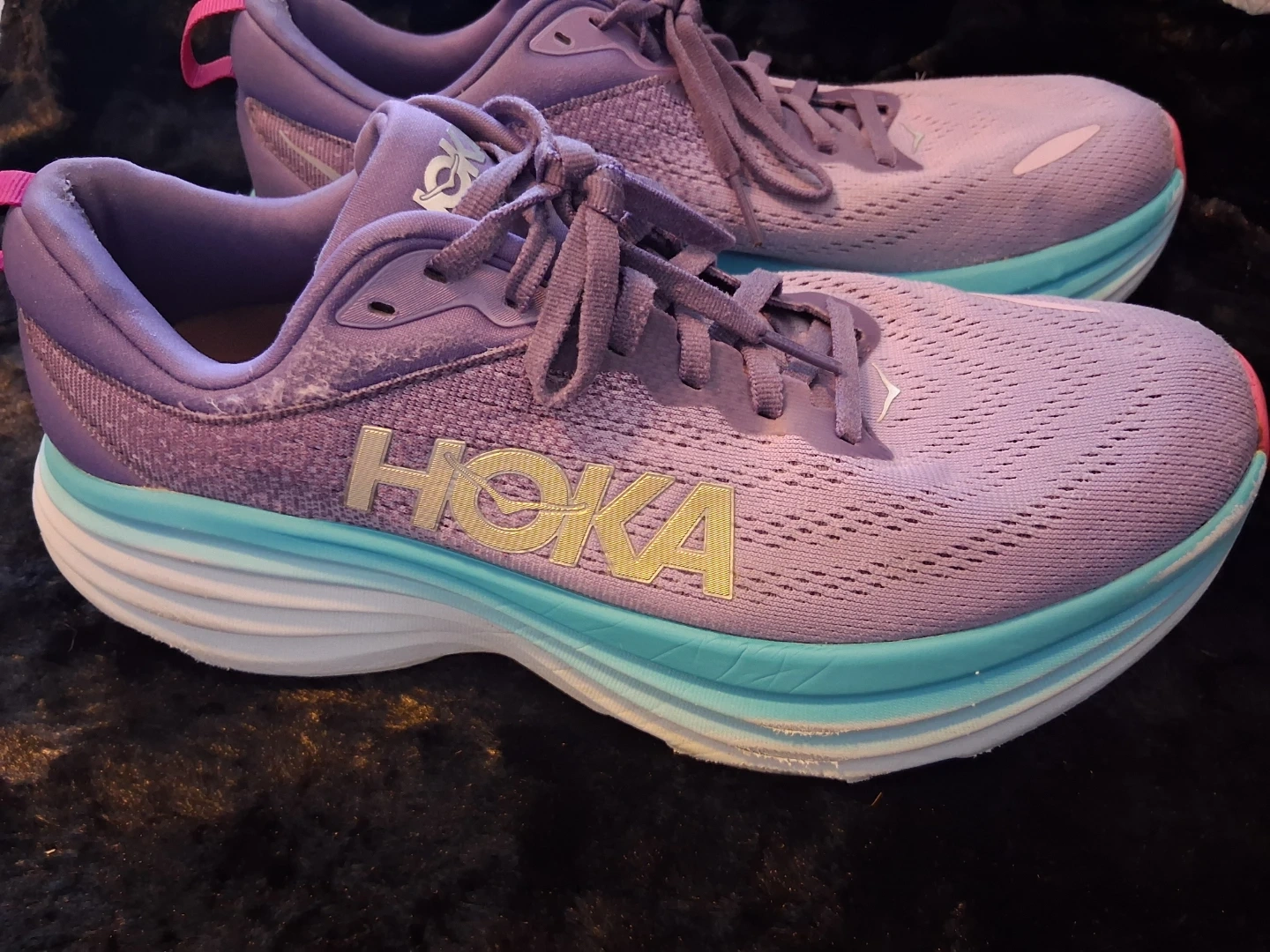 These Hoka running shoes are designed for comfort and performance. They feature a breathable mesh upper and a cushioned midsole for support. The durable rubber outsole provides excellent traction. Perfect for road running or everyday wear!