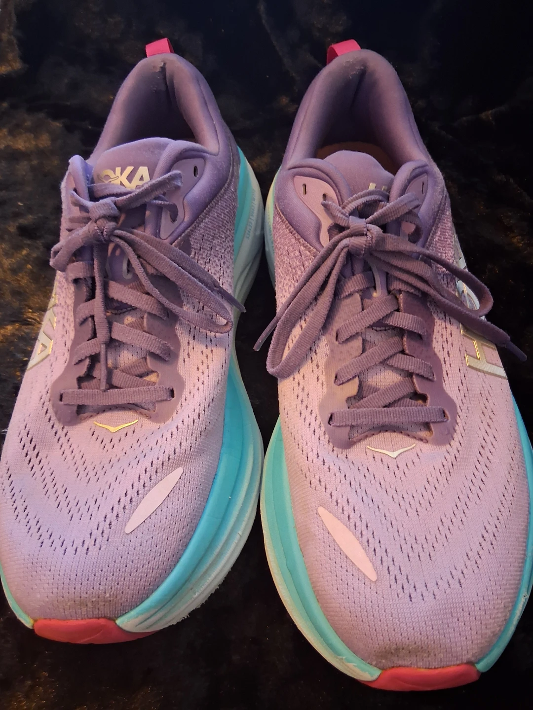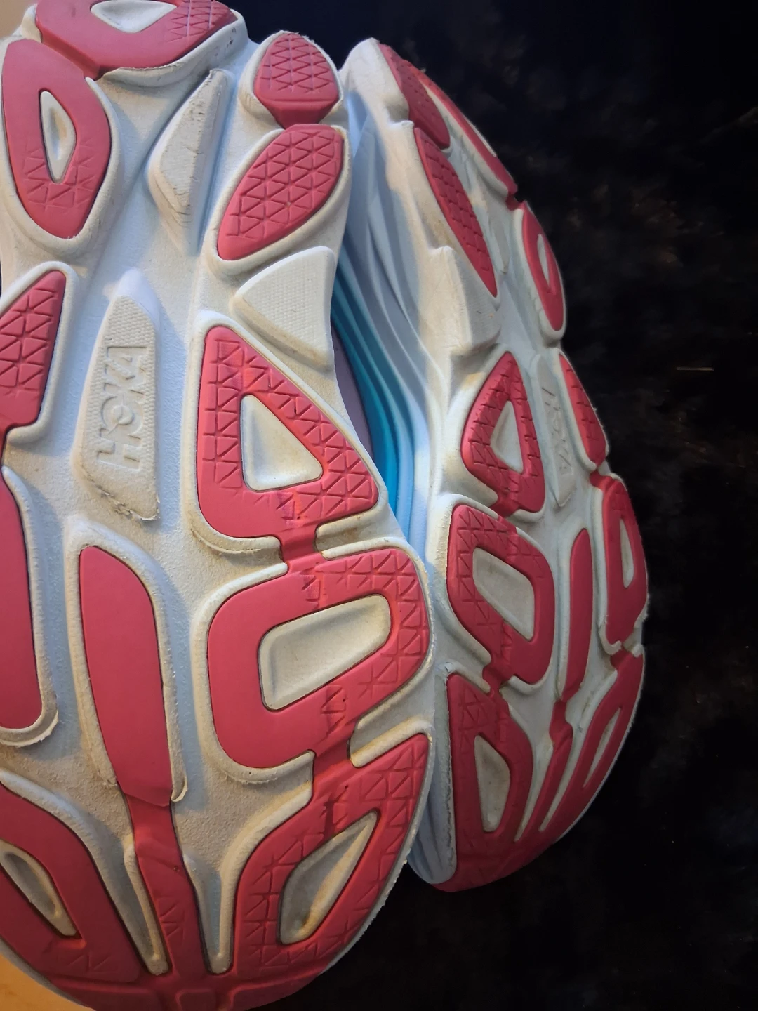 These Hoka running shoes are designed for comfort and performance. They feature a breathable mesh upper and a cushioned midsole for support. The durable rubber outsole provides excellent traction. Perfect for road running or everyday wear!