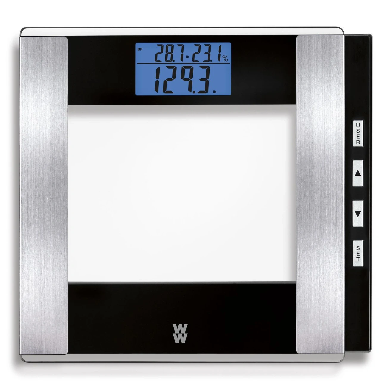 - Calculates weight, body fat, body water/hydration, body mass index (BMI), and bone density