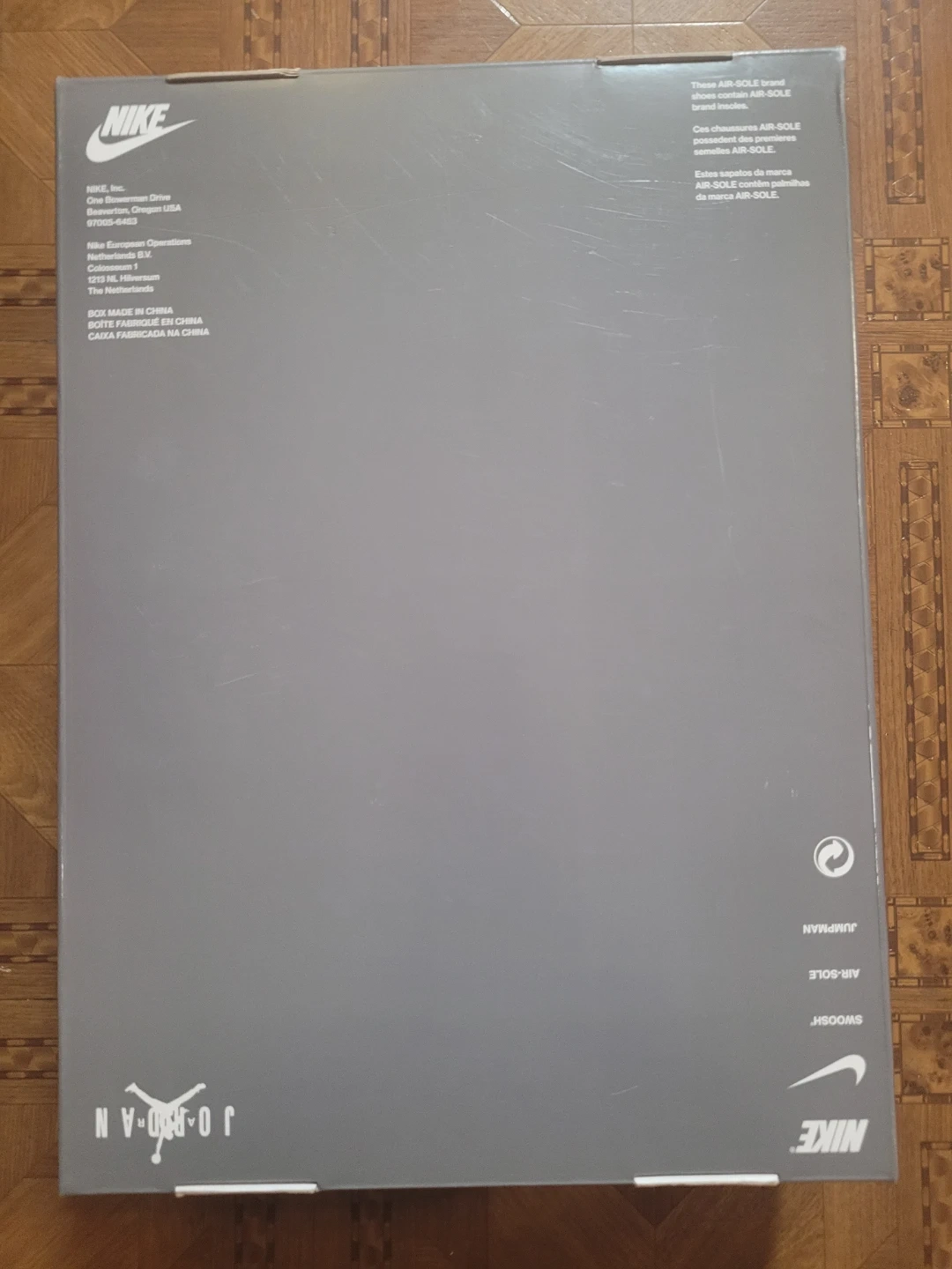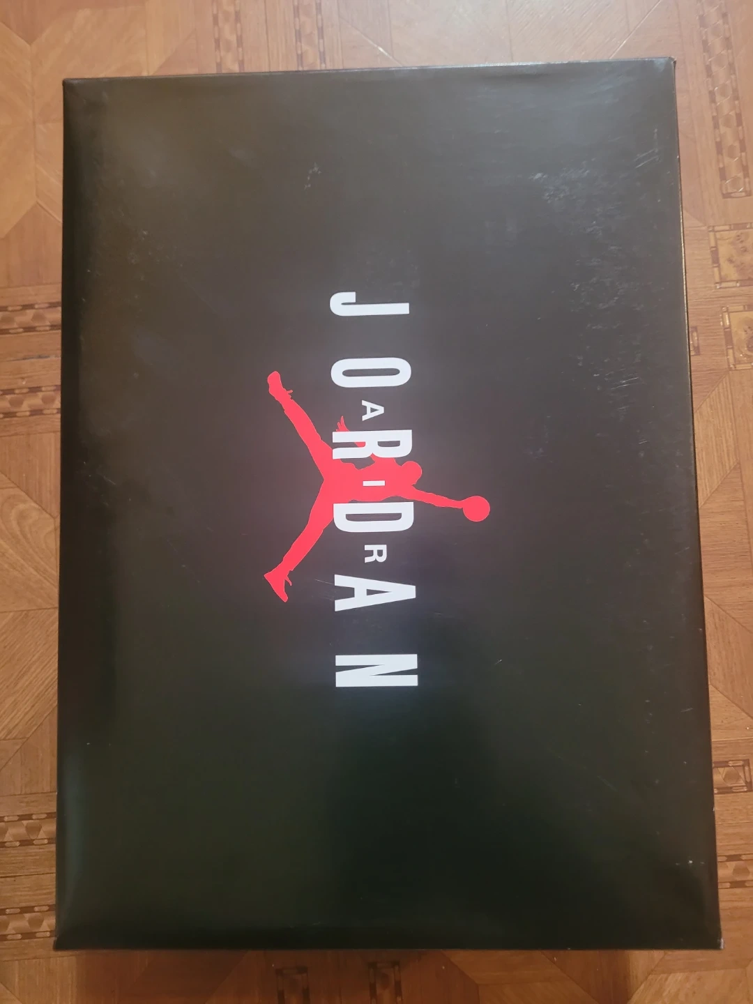 This is a Jordan Air Sole shoe box. It comes with the iconic Jumpman logo. The box is made of cardboard.