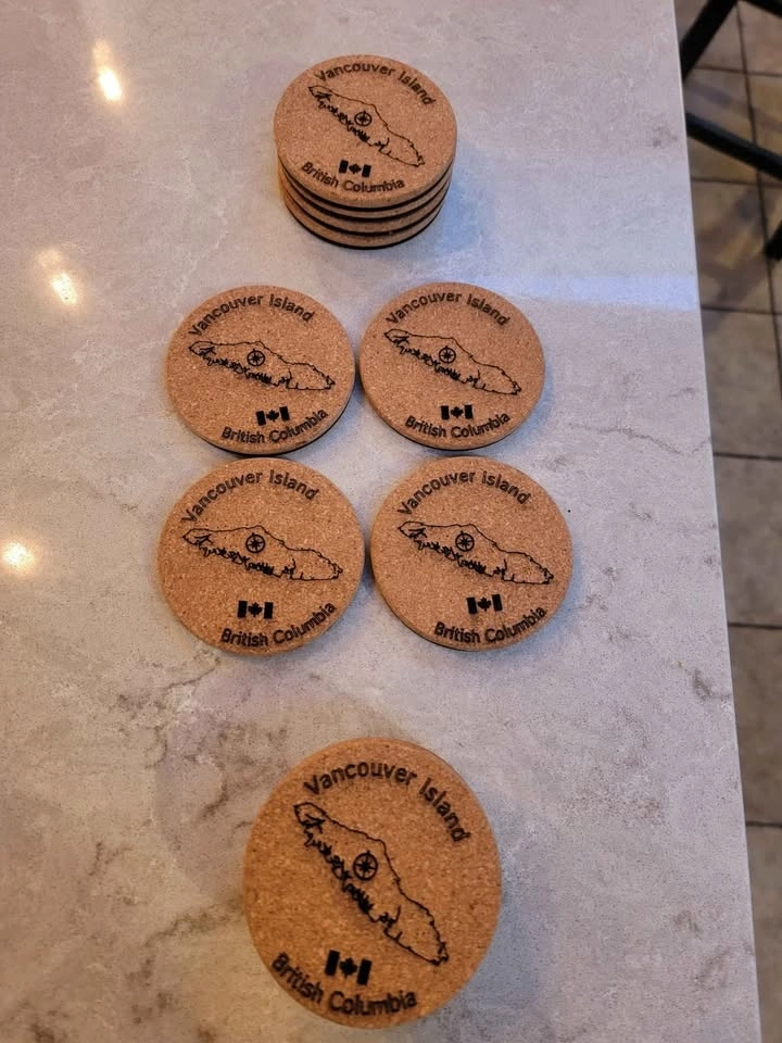 A great gift idea for visitors to our fair island. These coasters are laser cut on cork, backed with 3mm Birch ply, and have felt pads on the bottom to protect furniture. I can also do custom designs if you have something specific in mind, or for small business advertising. Yes, these are available. I am able to take the following for payment: Cash, E-Transfer, Debit (In Person with Square Device), Credit Card (In Person with Square Device). See the other cool things I build (over 100) here: https://timothyflath.smugmug.com/Personal/Laser-Cutting-Engraving-Products