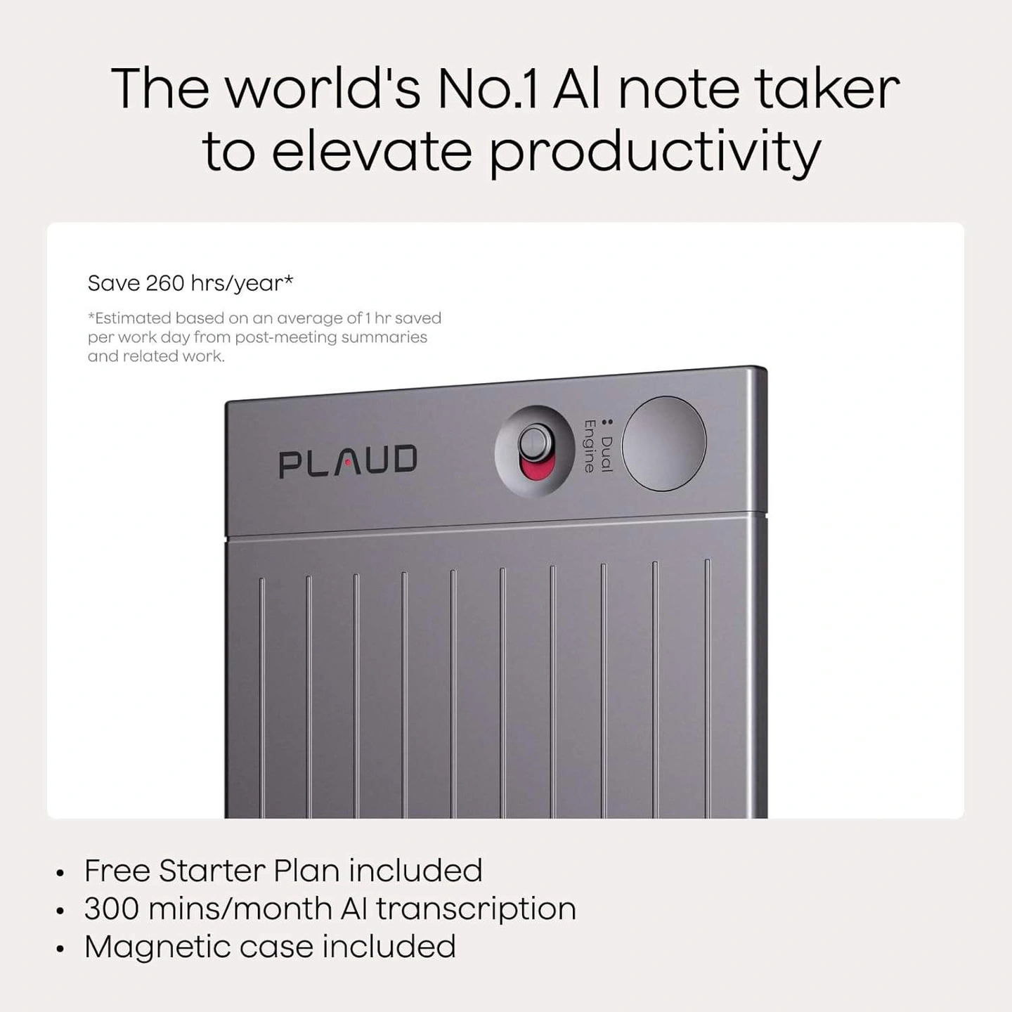 About this item: Capture conversations in 112 languages and generate accurate transcripts with the Plaud App and Web. Plaud Intelligence uses leading models like GPT-5.2, Claude Sonnet 4.5, and Gemini 3 Pro to transform raw audio into structured insights. Choose from over 10,000 professional templates to generate mind maps and to-do lists, turning hours of discussion into immediate clarity