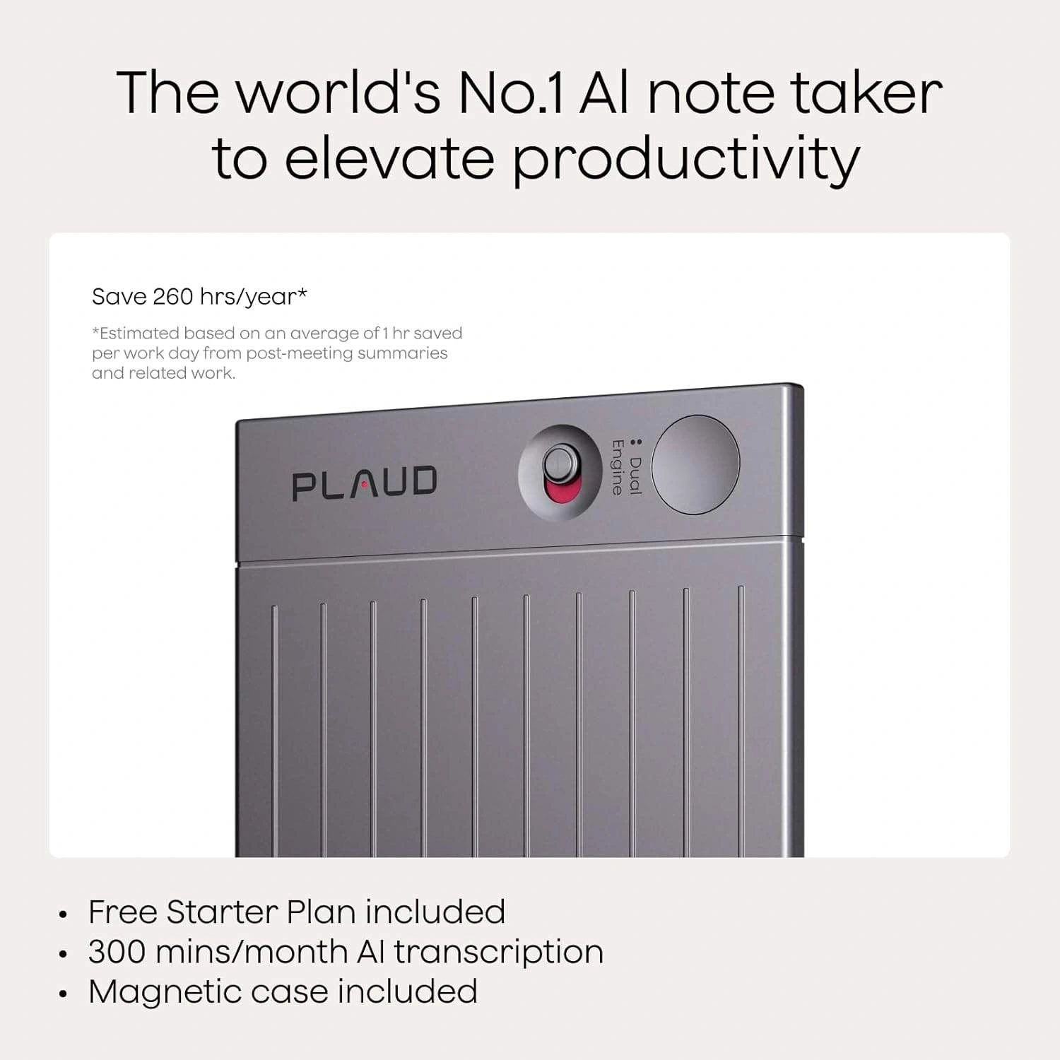 About this item: Capture conversations in 112 languages and generate accurate transcripts with the Plaud App and Web. Plaud Intelligence uses leading models like GPT-5.2, Claude Sonnet 4.5, and Gemini 3 Pro to transform raw audio into structured insights. Choose from over 10,000 professional templates to generate mind maps and to-do lists, turning hours of discussion into immediate clarity