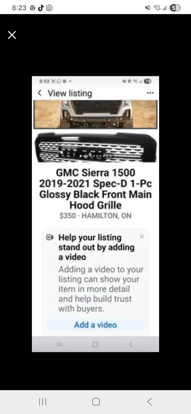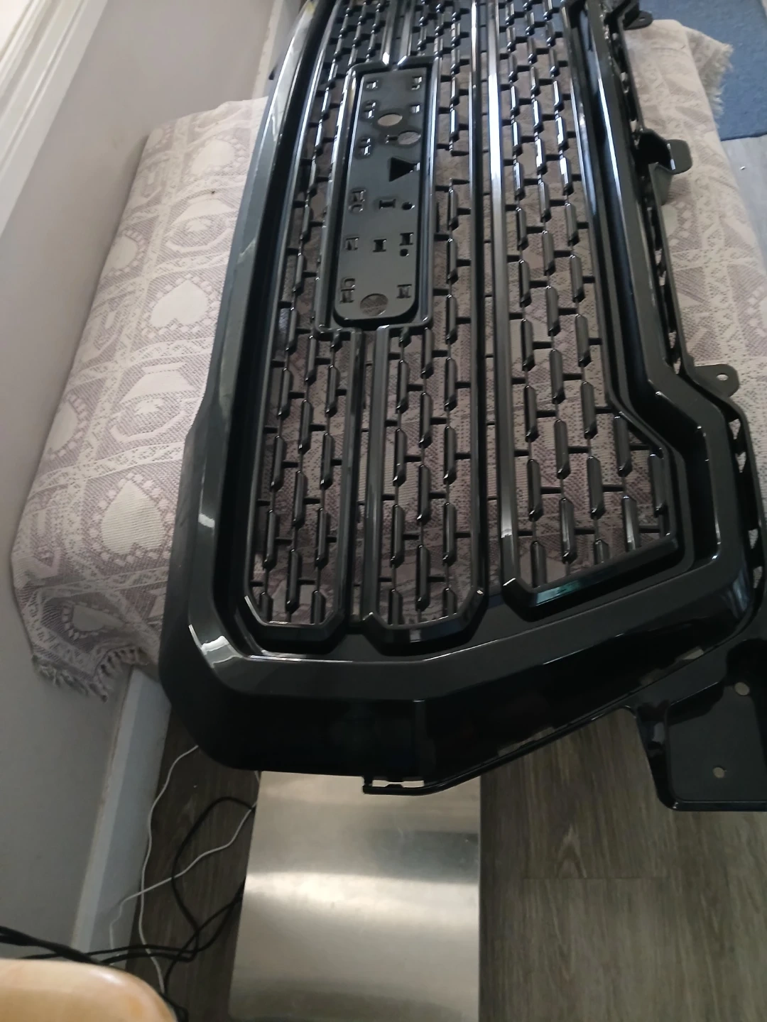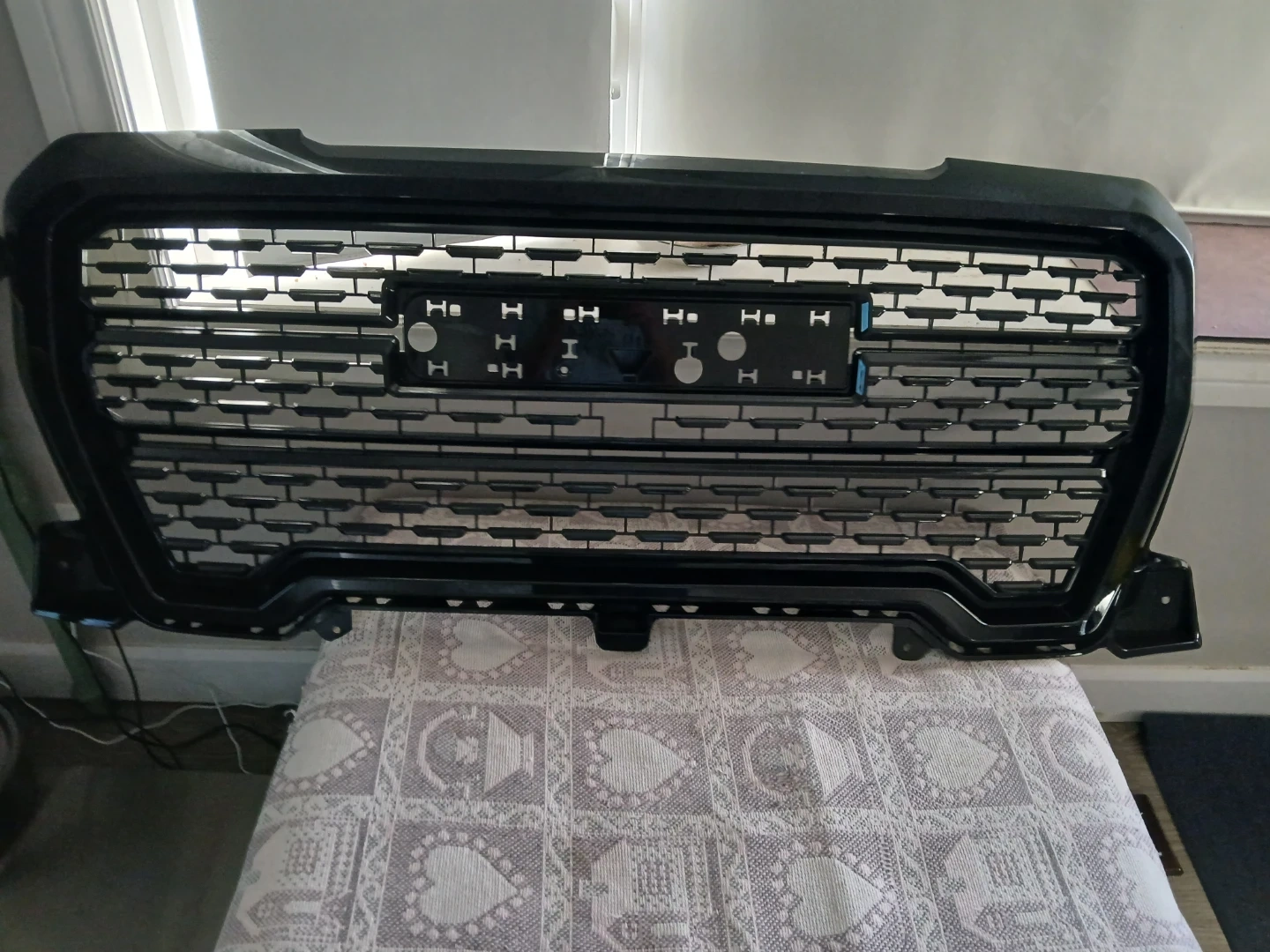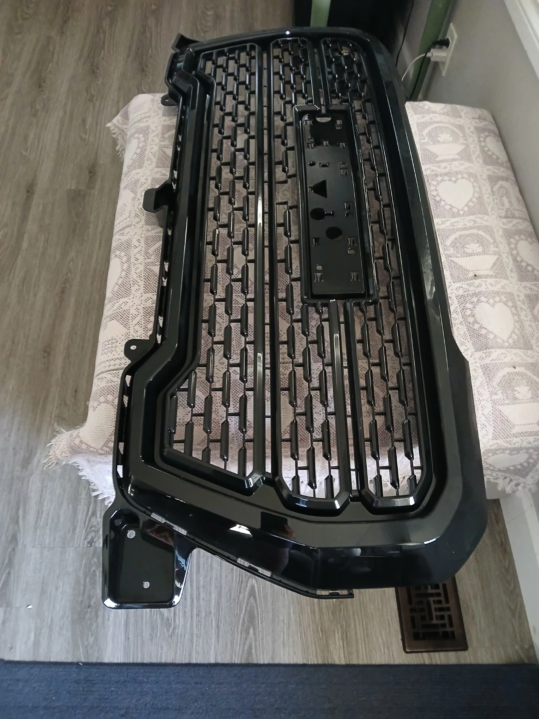 This is a 1-Pc glossy black front main hood grille for a GMC Sierra 1500. It's designed for models from 2019 to 2021. The grille is made of durable plastic.