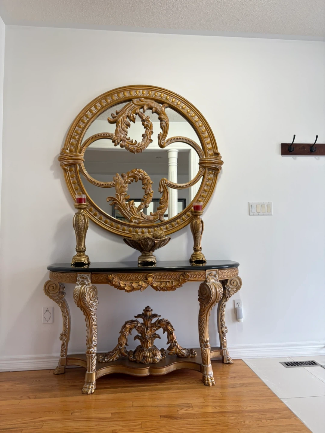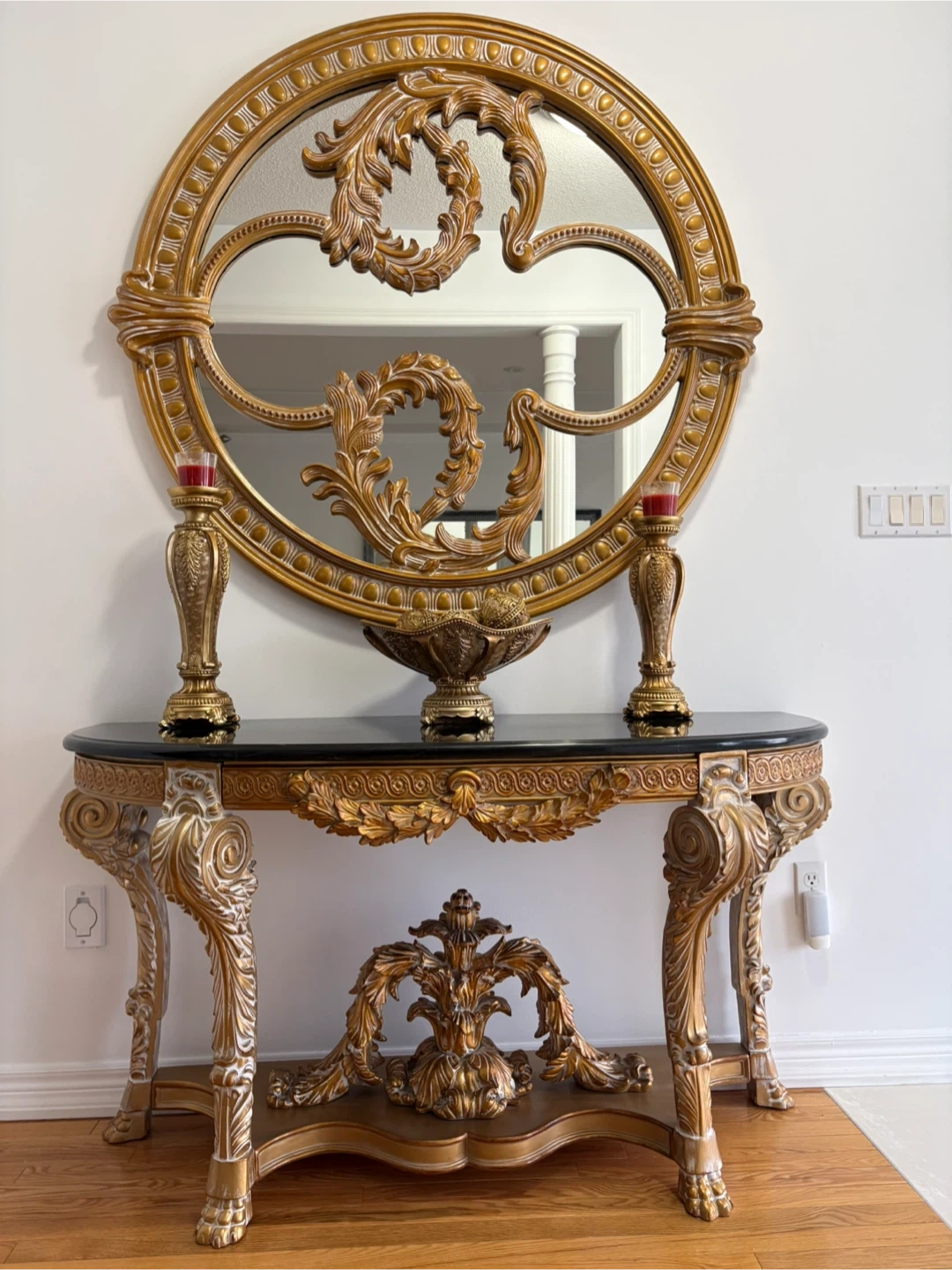 Ornate Gold Console Table with Oval Mirror