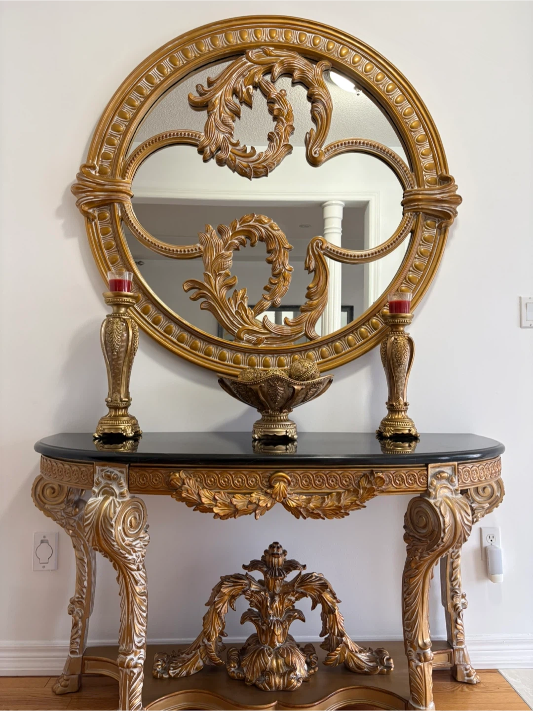Ornate Gold Console Table with Oval Mirror