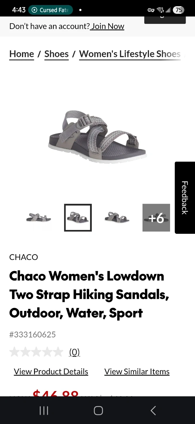 Buy & SellChaco Sandals 7.5 Women's AdjustableChaco Sandals 7.5 Women's Adjustable$27Grey Chaco sandals. Adjustable straps with buckle closure. Good for walking and outdoor activities.ConditionLike newWHERE TO MEETMy houseView MapSELLERJanQueensborough40238 reviews0 chats·1 favorites·3 viewsSEND CHAT TO SELLERHi Jan! I’m interested in your listing.Hi Jan! I’m interested in your listing.Get the Karrot app to chatSign In to chat