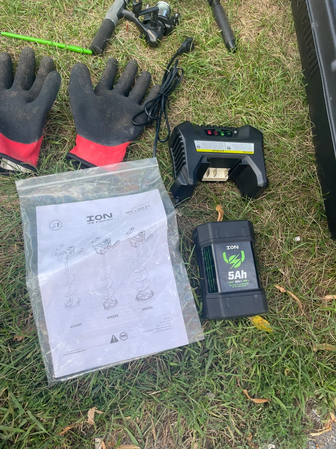 Ice Fishing Gear Set - Auger, Sled, Rods & More