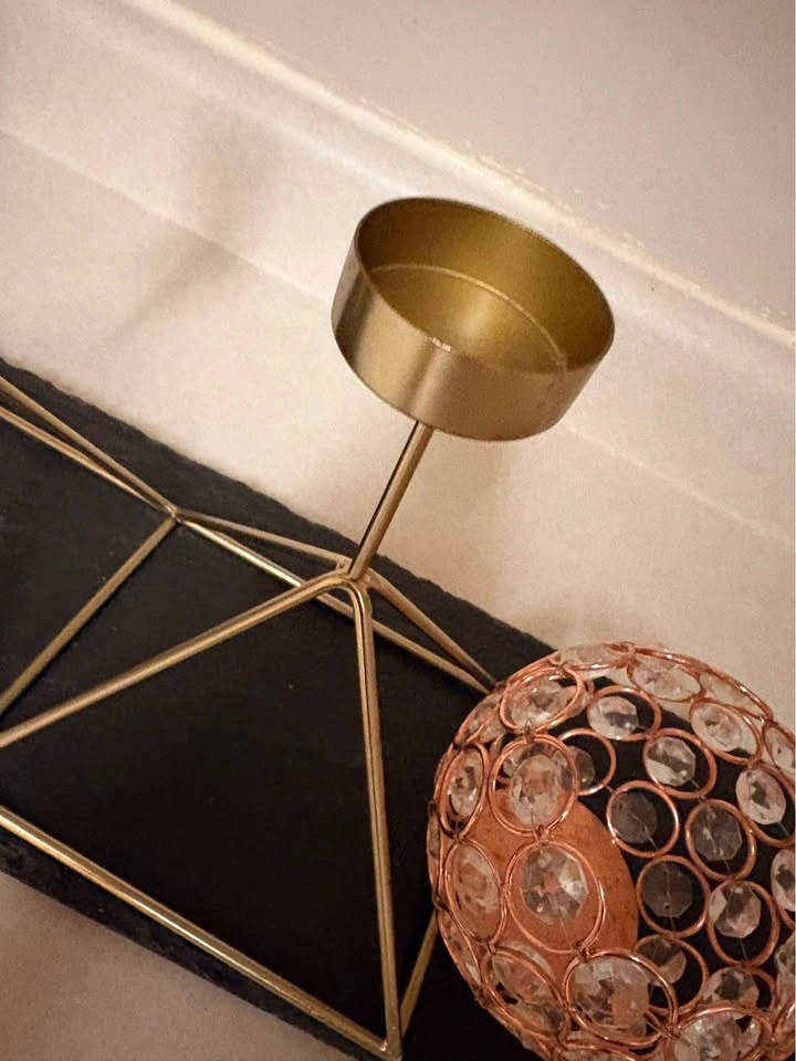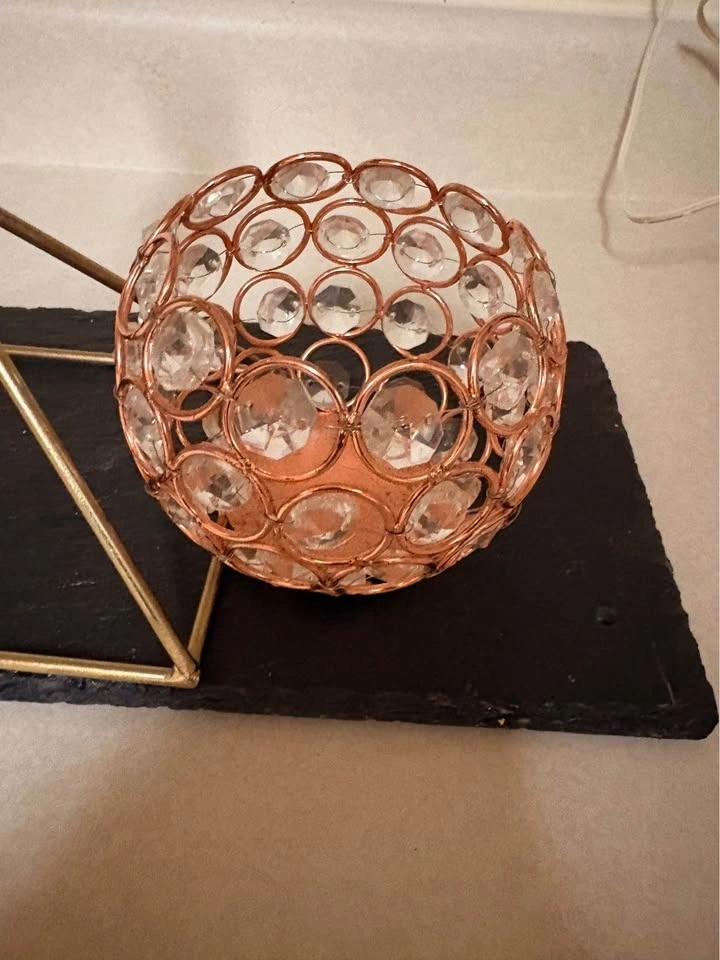 Dining centre piece with tea light candle holder, stone platform and small metal gem container. Dining is too small for it, you can use it for anything else. Selling for $50 for everything, or best offer.