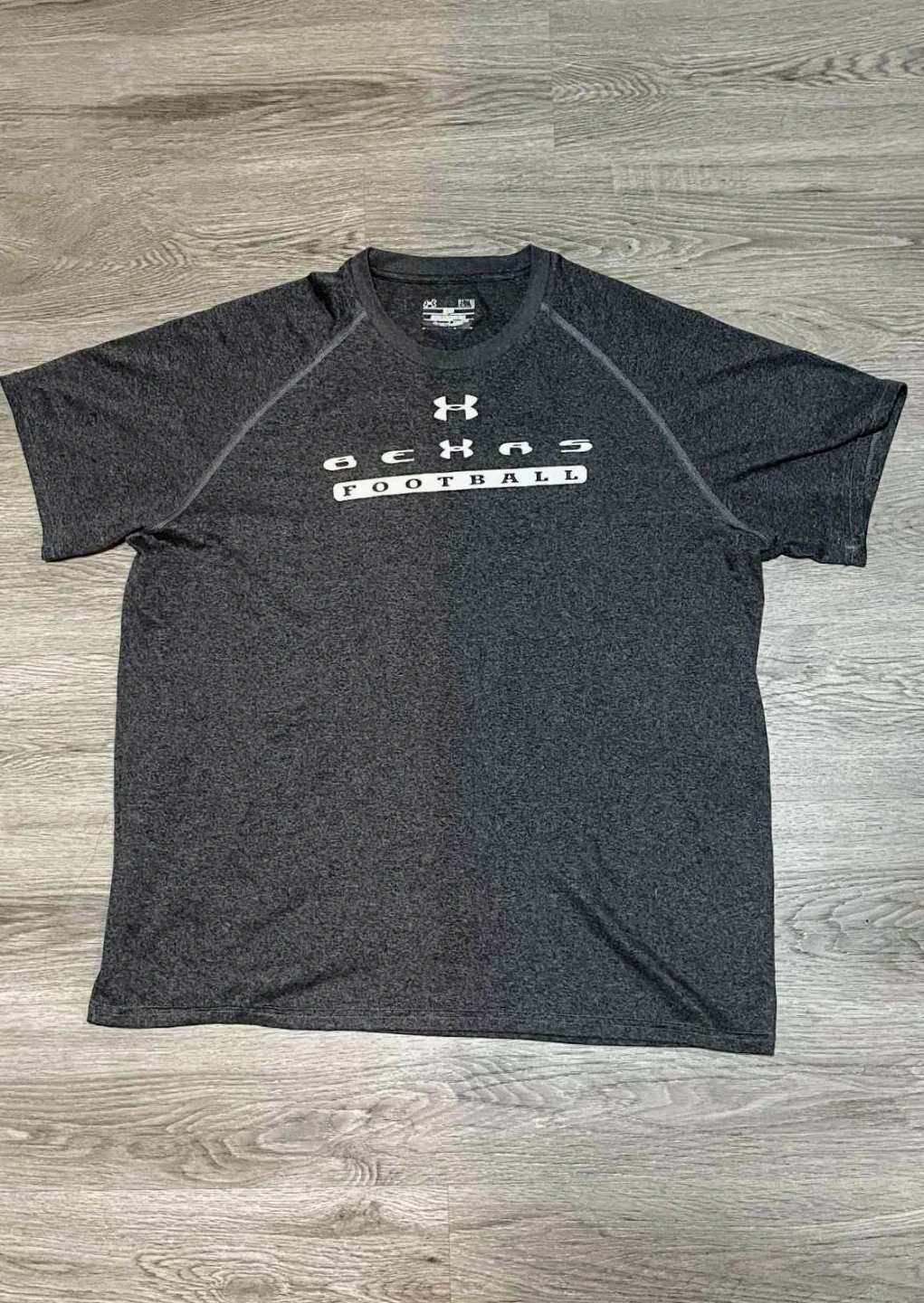 This is an Under Armour t-shirt in size large. It's a charcoal grey colour. The shirt features "OCHO" and "FOOTBALL" graphics on the front.