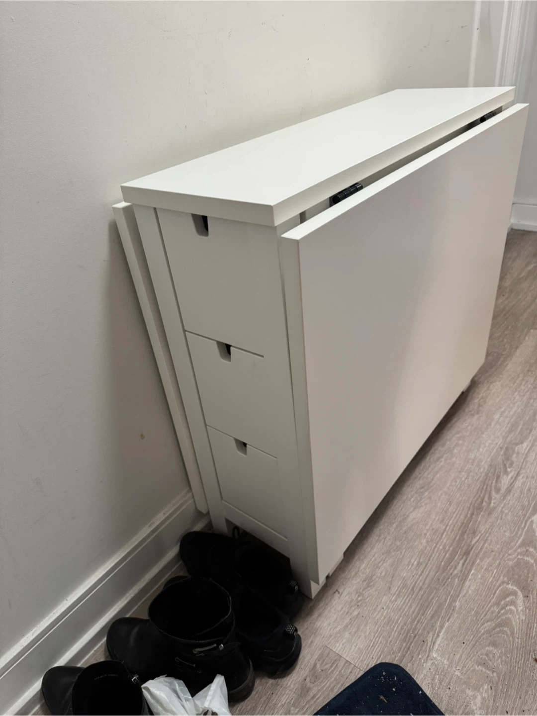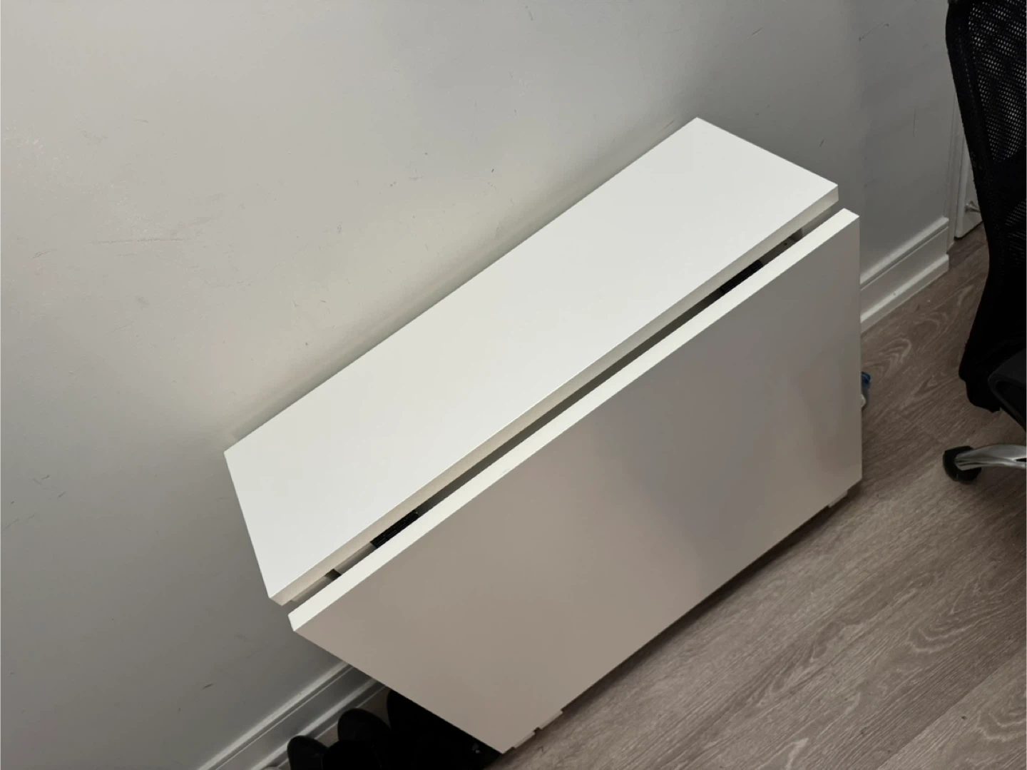Selling an IKEA Norden gateleg table in white! It's a handy table that folds down to save space when you don't need the full size.