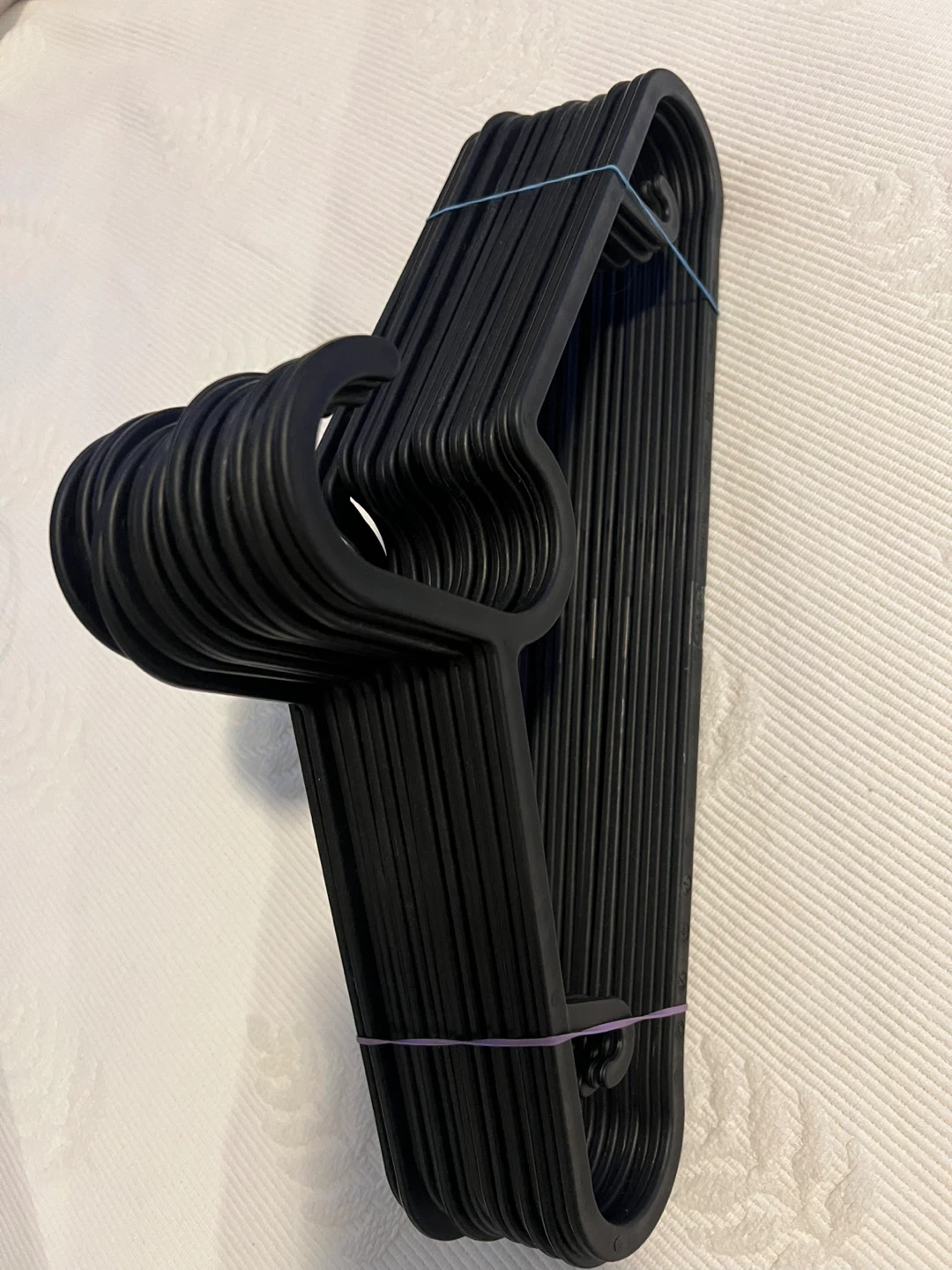 Set of 17 Grey velvet and 17 black plastic Hangers
