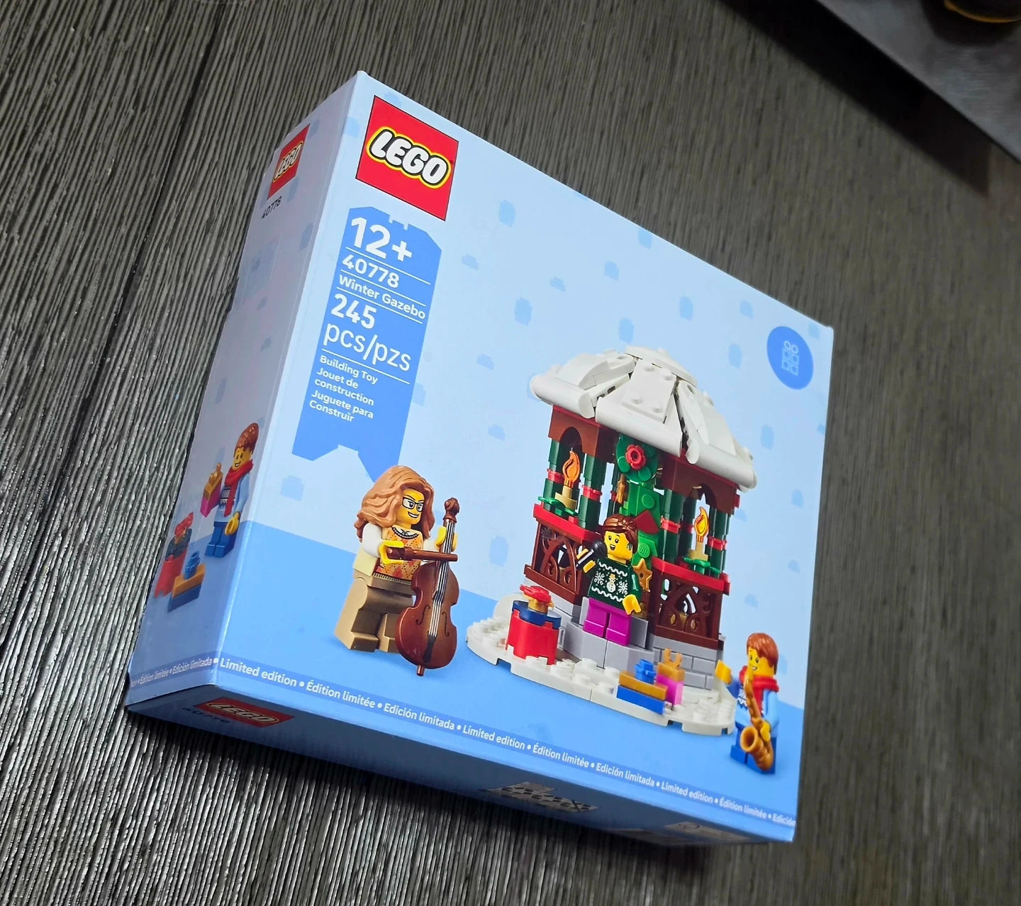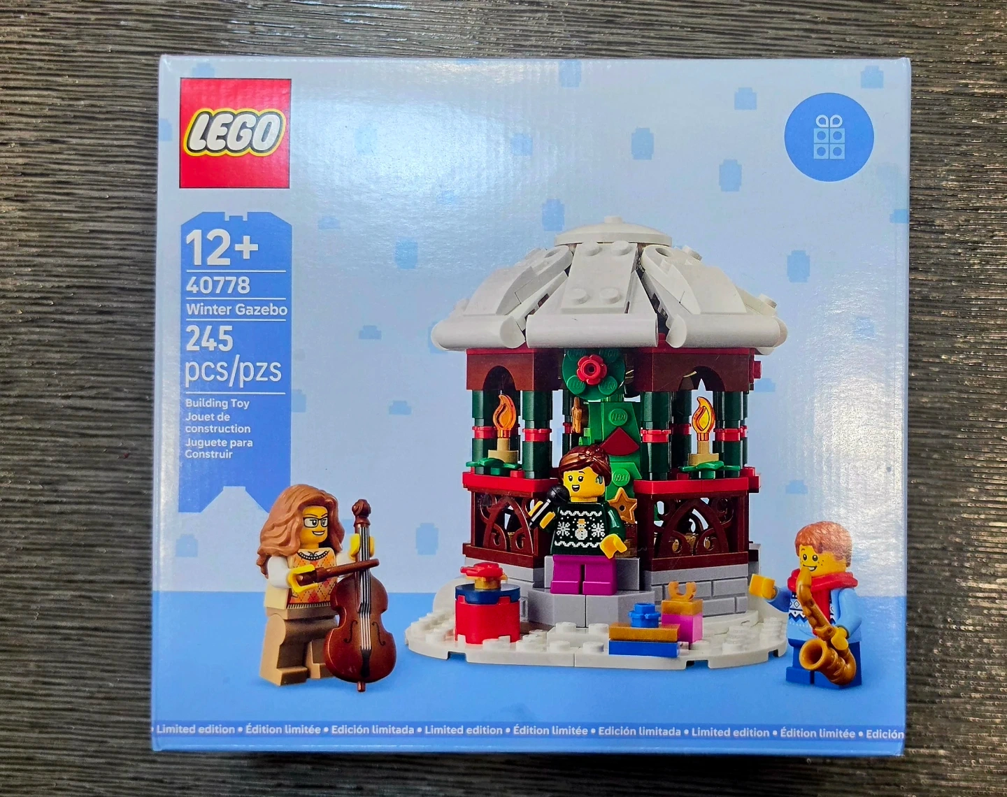 Build the festive LEGO Winter Gazebo set! It's a limited edition building toy with 245 pieces. Includes minifigures playing music. Perfect for holiday displays! FACTORY SEALED