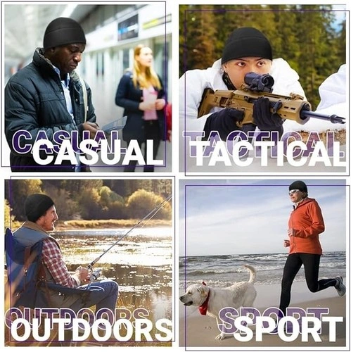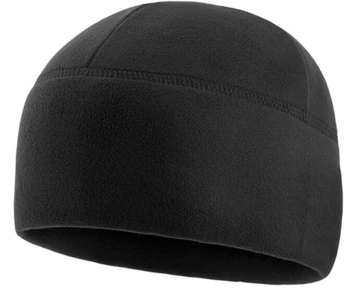 Tactical Fleece Beanie in BLACK. One size fits all. Made from premium quality MICROFLEECE (100% Polyester). It's warm, soft, durable, and water-resistant. The low-profile design is great for winter sports, outdoor activities, tactical gear, or casual daily wear. Can be worn with a helmet. Double-layered fleece for extra warmth and protection for your ears.