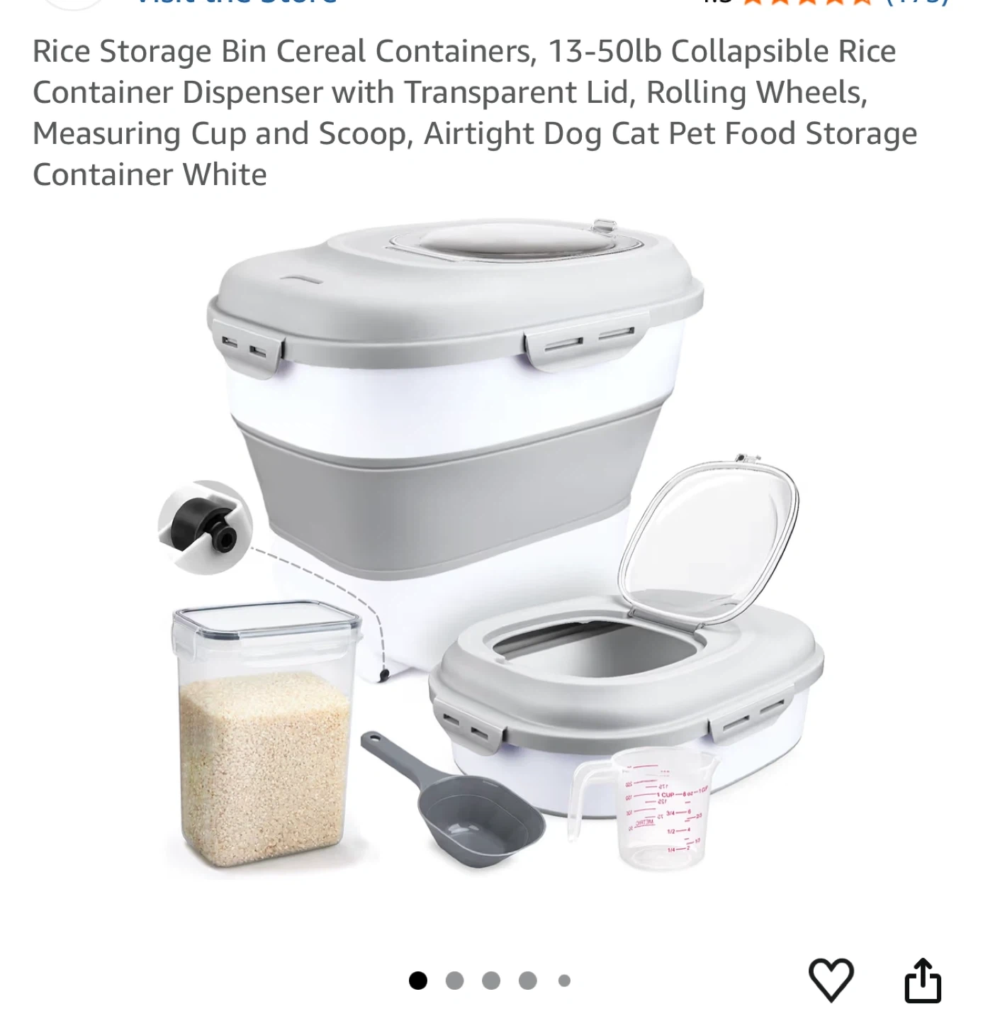 Rice Food Storage Container , Large Folding Food Storage Container With Measuring Cup, Wheel, Grey,About 41x26x38cm 1 [Large capacity] Suitable for storing a variety of food. It can contain 110.2 pounds of rice before folding and 33.1 pounds of rice after folding. Just press it hard and double it.