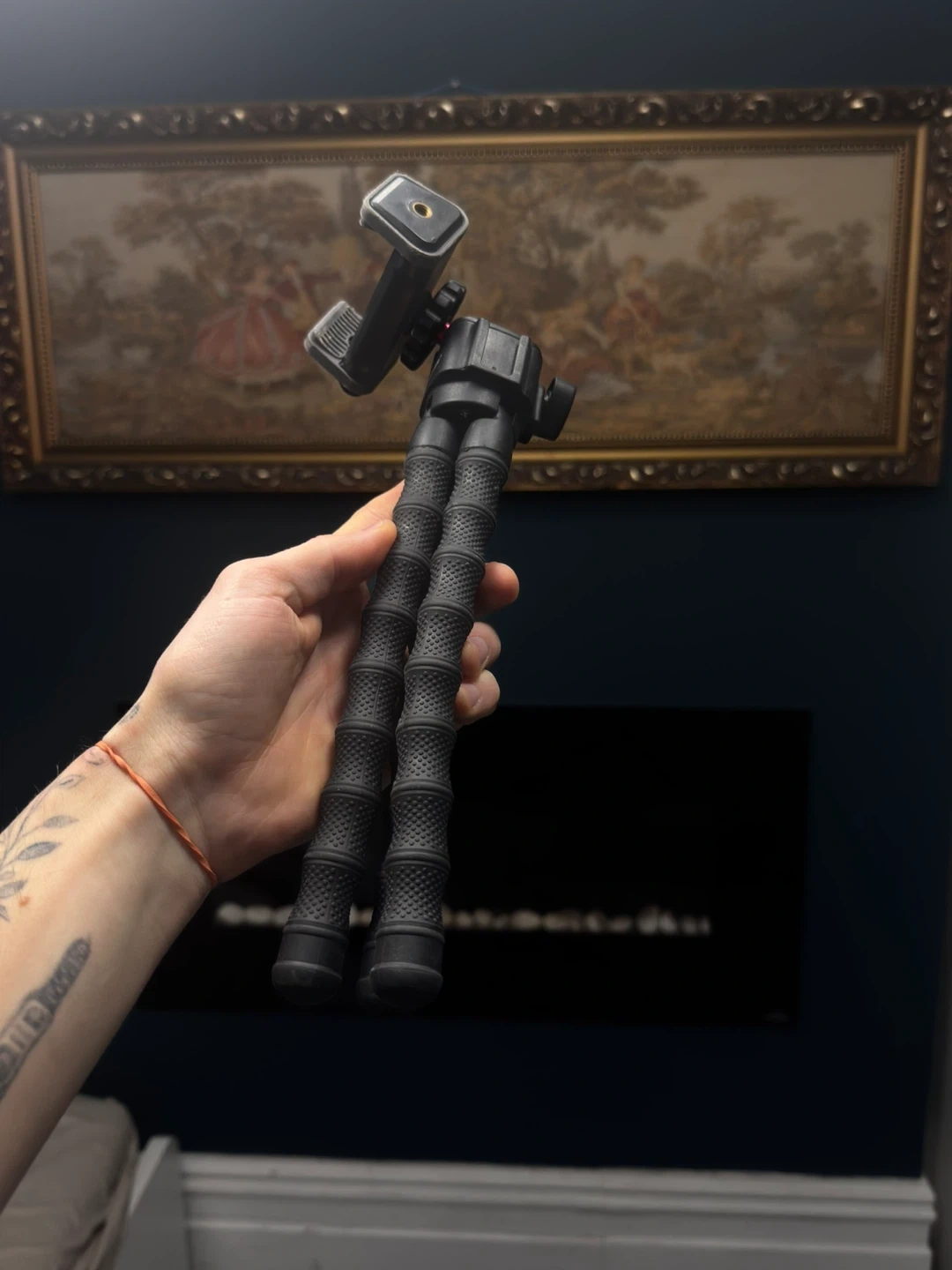 This black, flexible mini tripod is perfect for smartphones. It has bendable legs for easy positioning and a secure grip for your device. It's great for taking photos or videos hands-free!
