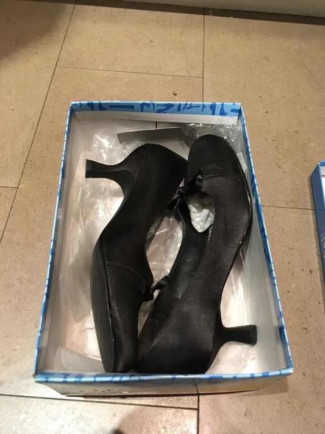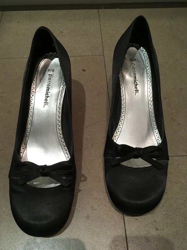 Selling a pair of Pierre Michel Black Satin shoes pumps with cute black satin bows and a cute comfortable heel. Size 8.5. These were used only a couple of times (literally - check out pic of heel to see that it's not worn down at all). Really cute and comfy. Asking $25. Available for pick up in the Broadview/Danforth area. Contact-free porch pick up. Check out my other great stuff!