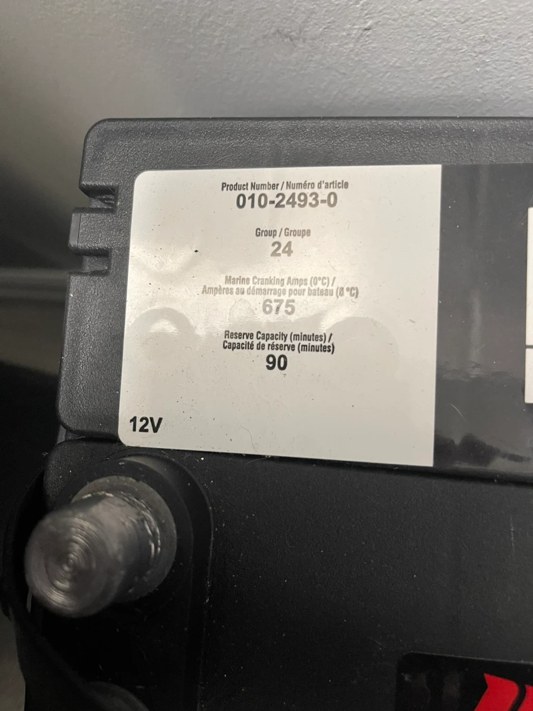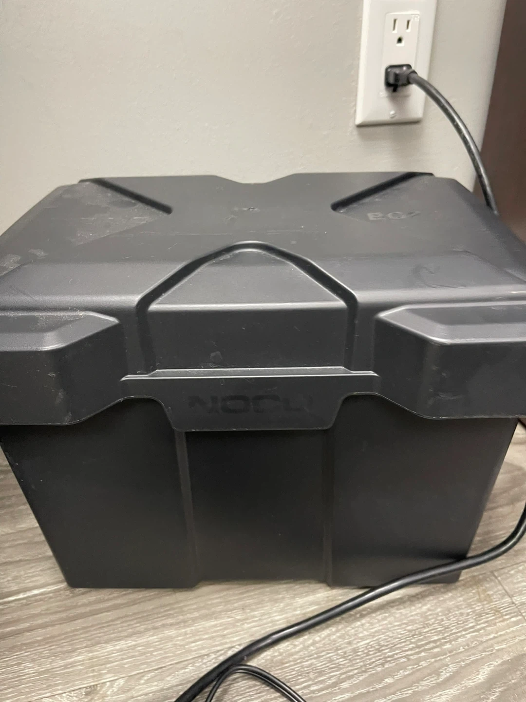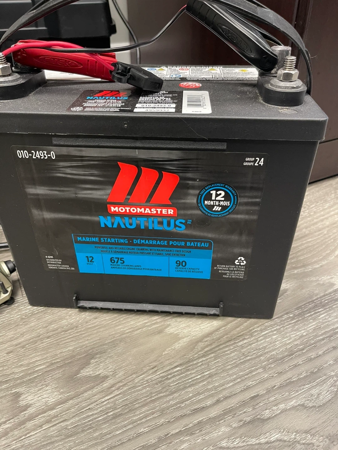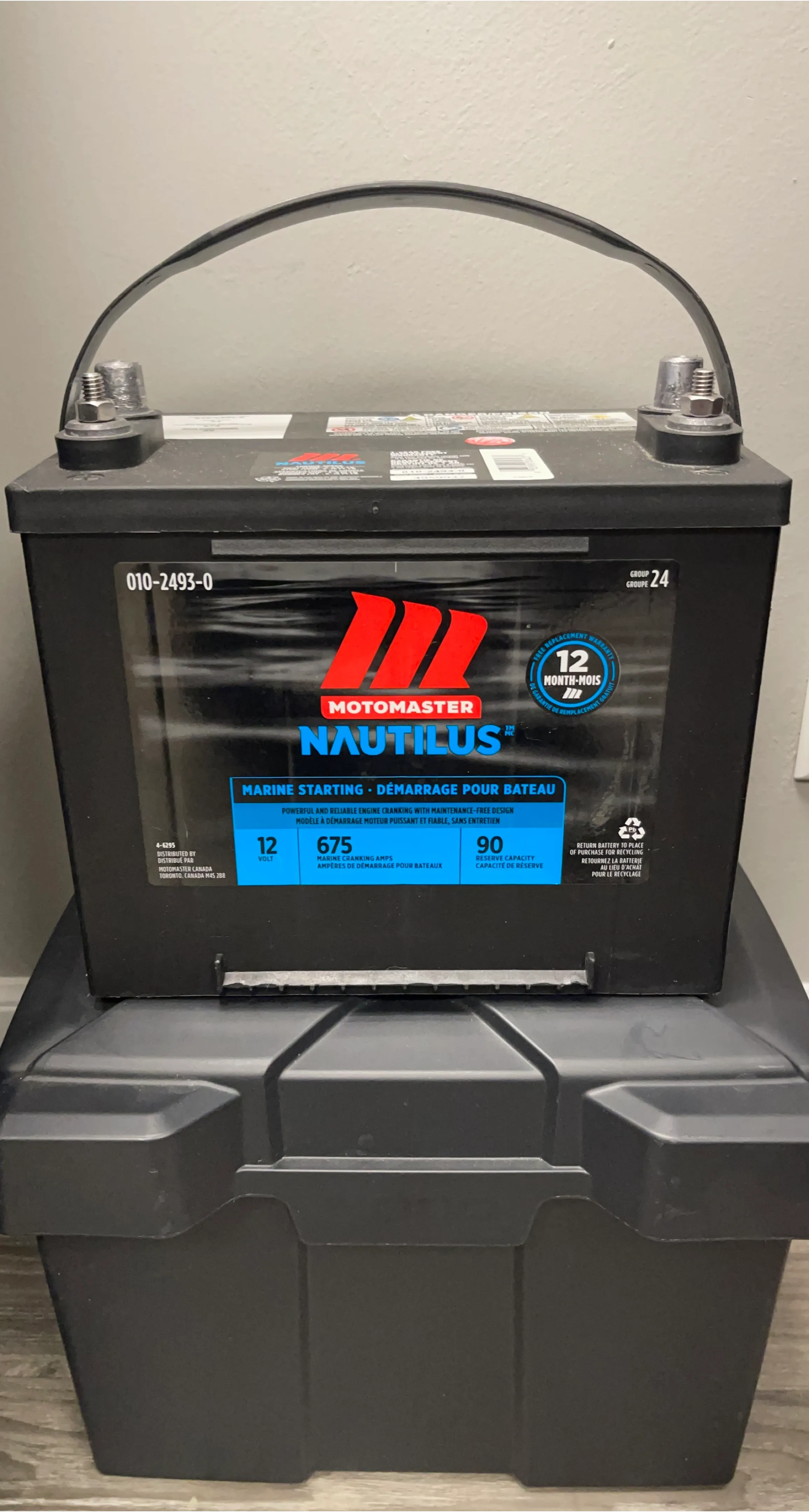 This is a Motomaster Nautilus marine battery. It's 12-volt with 675 CCA and 90 minutes of reserve capacity. The battery is housed in a black NOCO battery box. Barely used like new! Always kept on a battery maintainer.