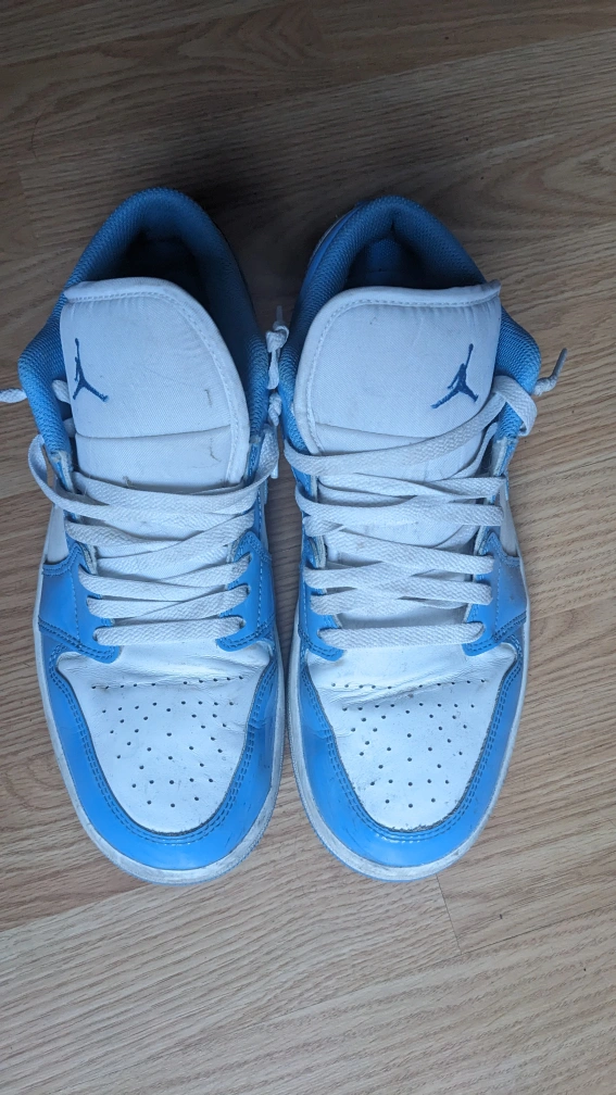 Selling a pair of Nike Air Jordan 1 Lows in the UNC Blue colourway, size 9 US. They've been gently used and are still in good condition. Classic style!