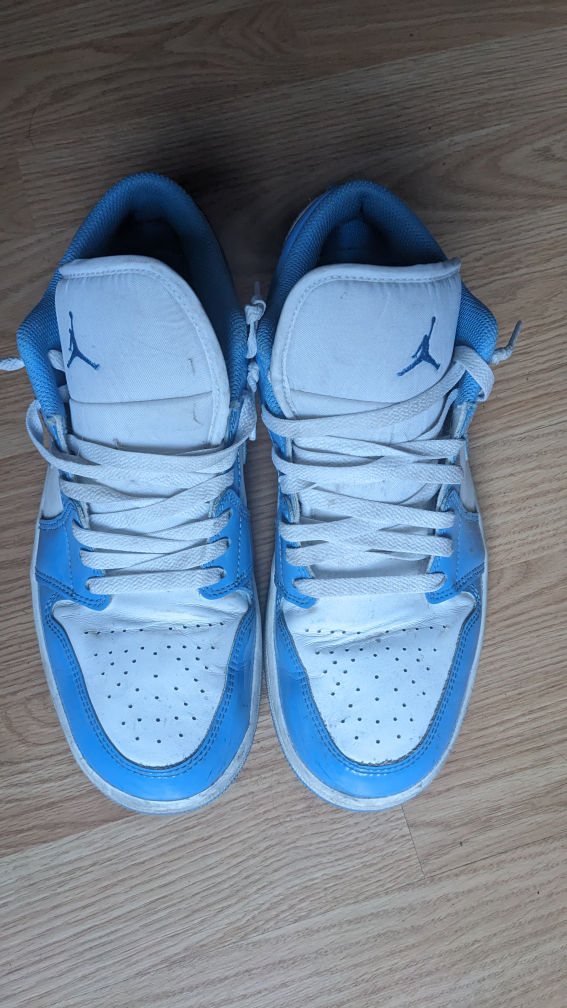 Selling a pair of Nike Air Jordan 1 Lows in the UNC Blue colourway, size 9 US. They've been gently used and are still in good condition. Classic style!