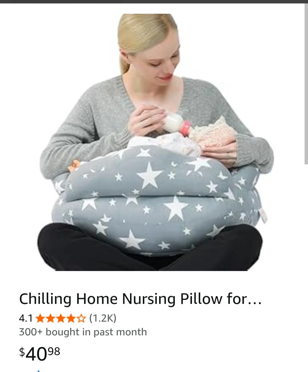 I'm selling a Chilling Home nursing pillow! It's in great condition and has a cute star pattern. This pillow is designed to provide comfortable support for both you and your baby during feeding. It measures approximately 26 inches in length and 20 inches in width. Can also be used just when holding the baby