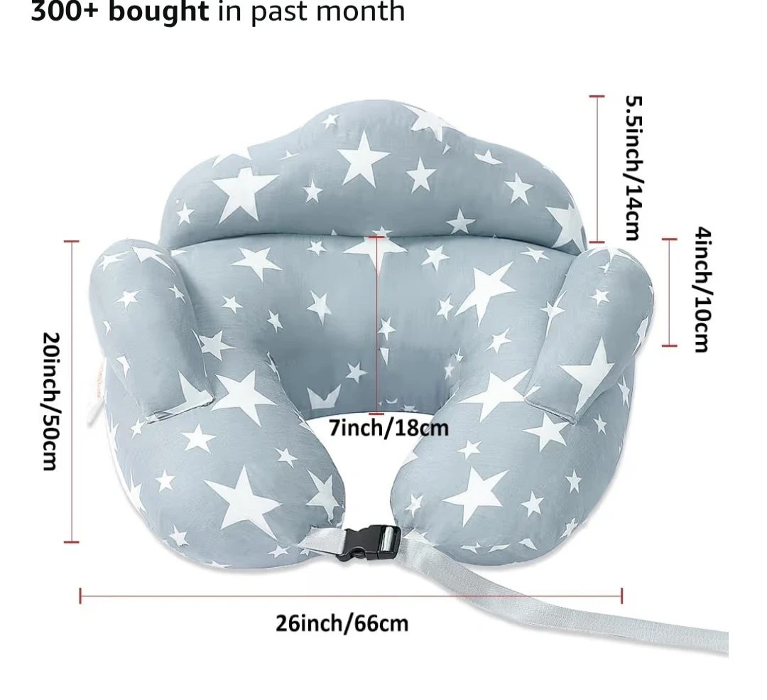I'm selling a Chilling Home nursing pillow! It's in great condition and has a cute star pattern. This pillow is designed to provide comfortable support for both you and your baby during feeding. It measures approximately 26 inches in length and 20 inches in width. Can also be used just when holding the baby