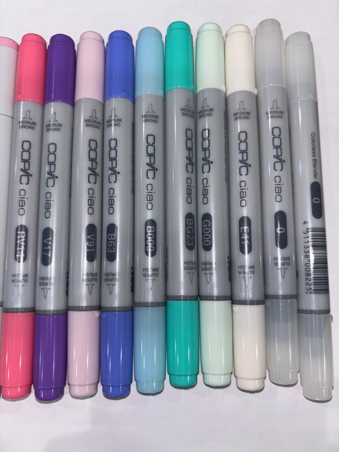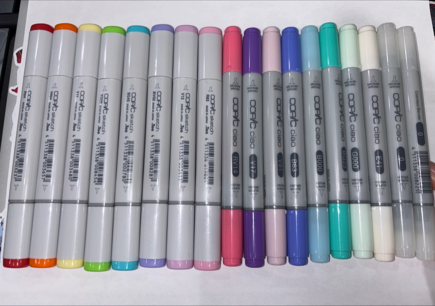 A set of 18 lightly used Copic markers (2 are colourless blenders).