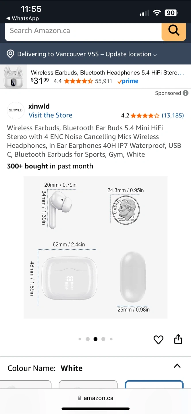 Selling a pair of Xinwld wireless earbuds in white. These earbuds feature Bluetooth 5.4 and ENC noise cancelling mics. They are also IP7 waterproof, making them great for sports and the gym. Enjoy immersive Hi-Fi stereo sound with oversized 13mm drivers. They also offer one-step pairing for easy use