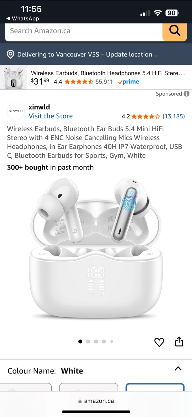 Selling a pair of Xinwld wireless earbuds in white. These earbuds feature Bluetooth 5.4 and ENC noise cancelling mics. They are also IP7 waterproof, making them great for sports and the gym. Enjoy immersive Hi-Fi stereo sound with oversized 13mm drivers. They also offer one-step pairing for easy use