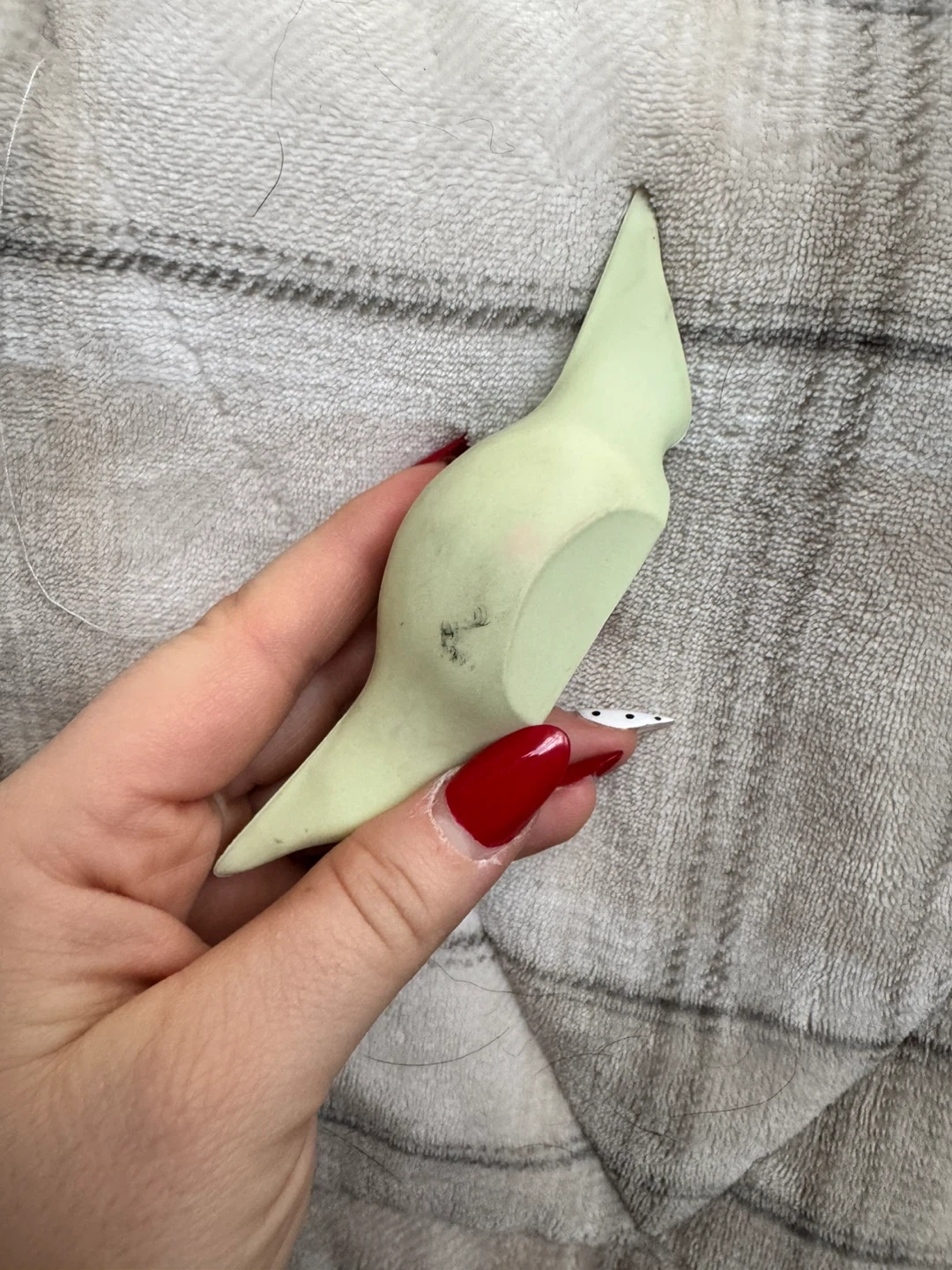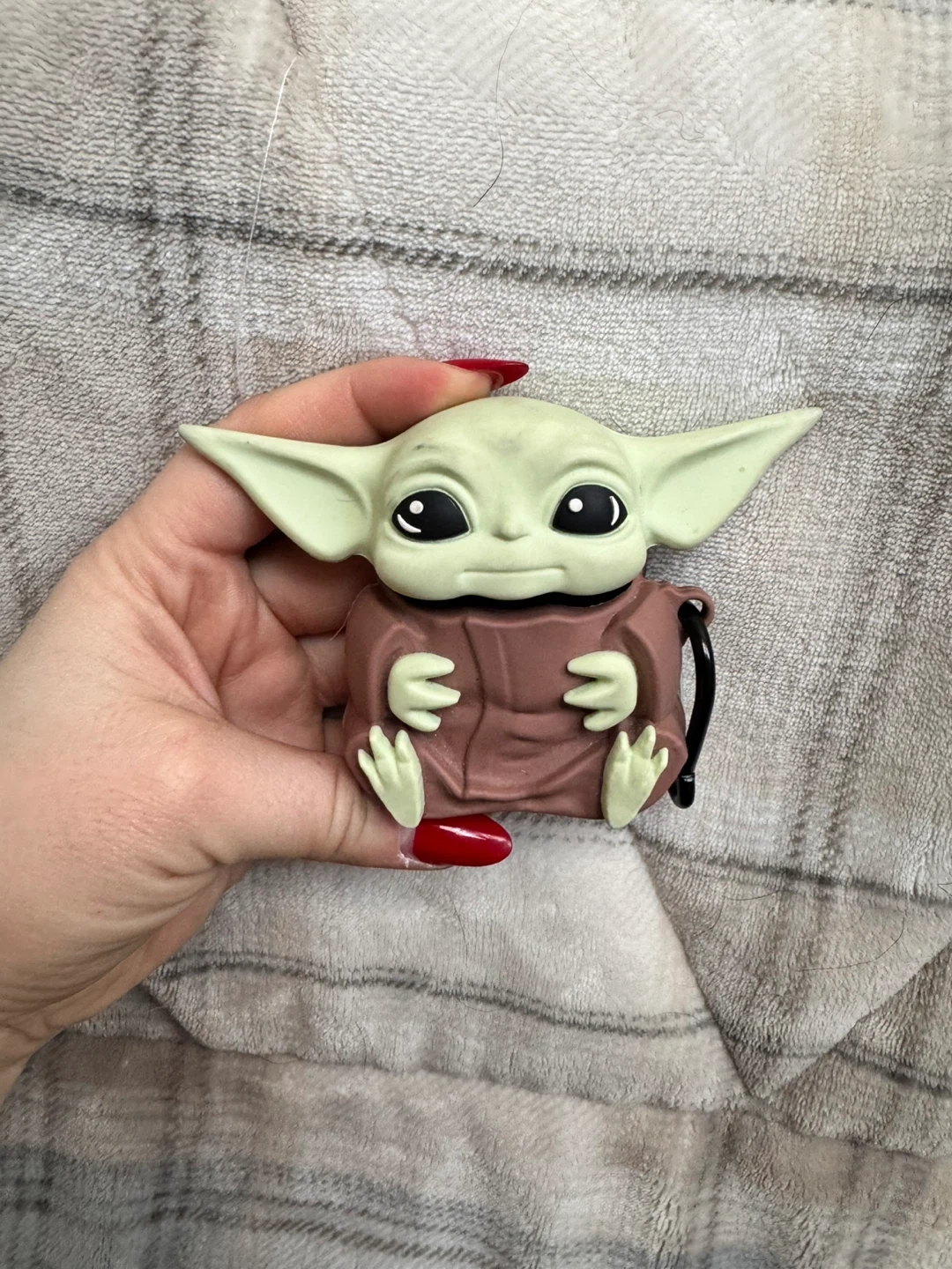 This is a cute Grogu AirPods case. It's made of a soft silicone-like material and has a clip for easy carrying. Protect your AirPods in Star Wars style!